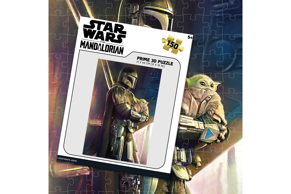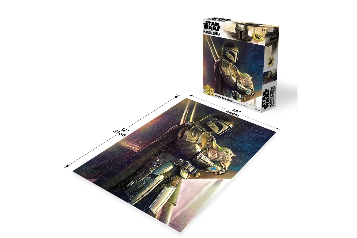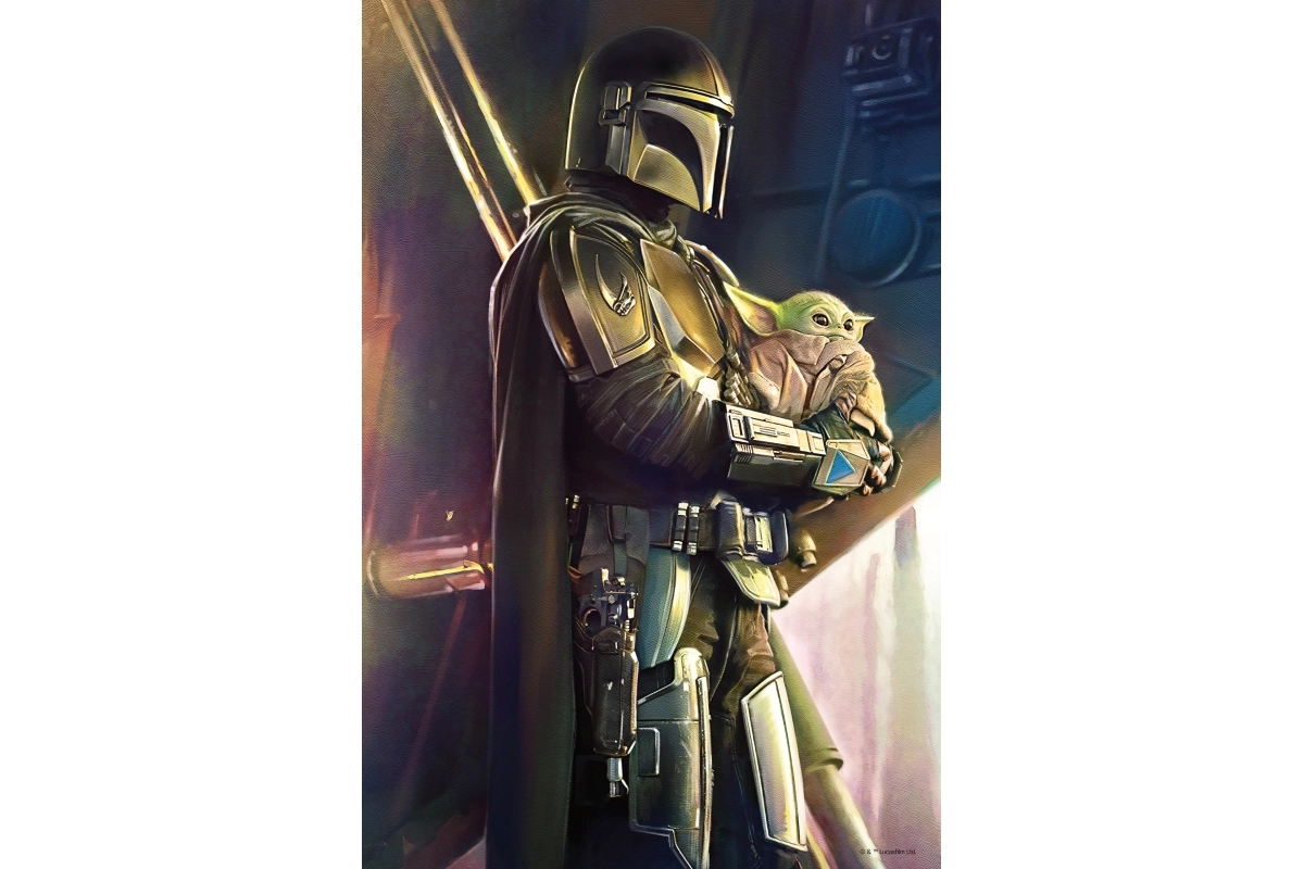 Speciel 3D (lentikulær) forarbejdning giver det samlede motiv dybde og dynamik – Mandalorian med Grogu træder frem fra enhver vinkel.