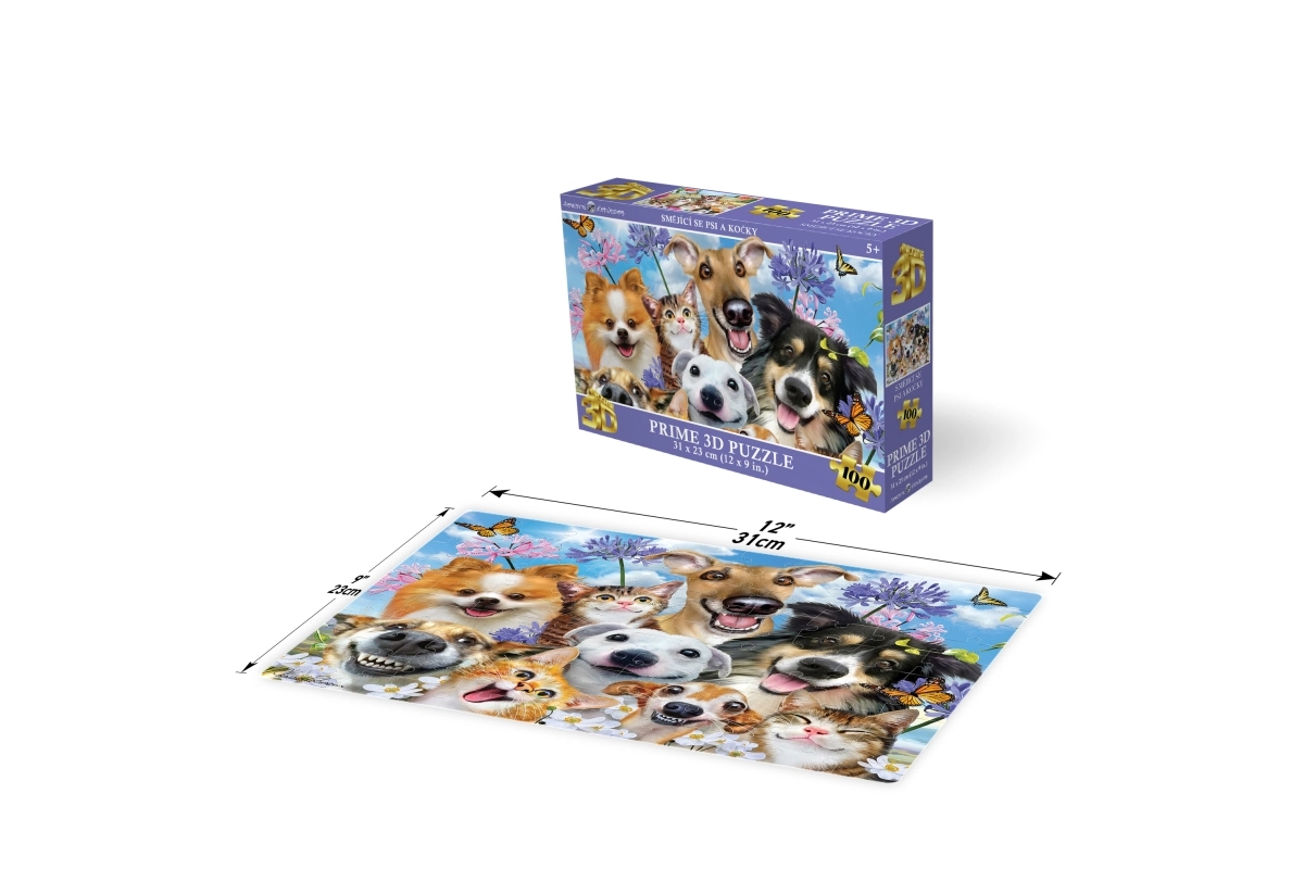 Grin sammen, mens I lægger 3D‑puslespillet med det sjove motiv af smilende hunde og katte. Med 100 brikker er puslespillet perfekt til at træne tålmodighed, koncentration og finmotorik. Det færdige billede på 31 × 23 cm vil tage sig flot ud på børneværelset.