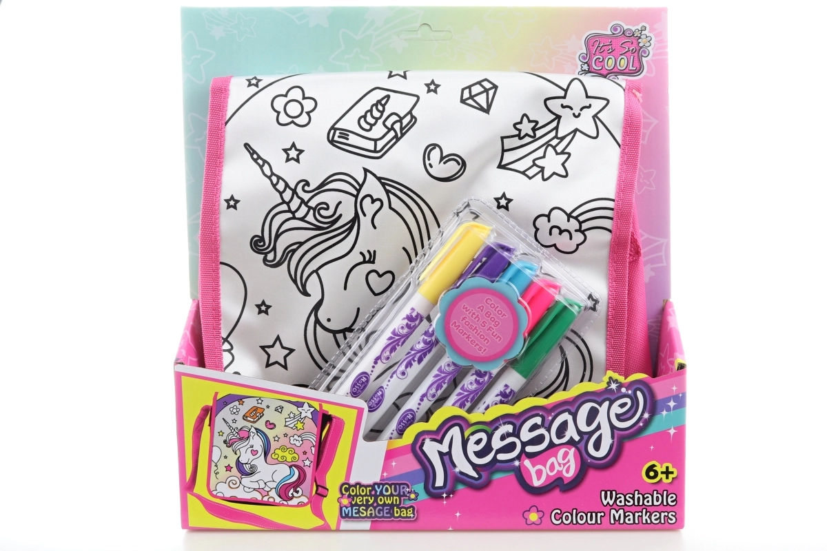 Opdag den magiske maletaske med enhjørningemotiv, som giver børn timevis af kreativ underholdning. Takket være den praktiske velcrolukning og den lyserøde rem bæres tasken behageligt og er let at åbne. I pakken finder du alt, hvad du behøver – selve tasken og 5 farver, så man kan gå i gang med at skabe med det samme.
