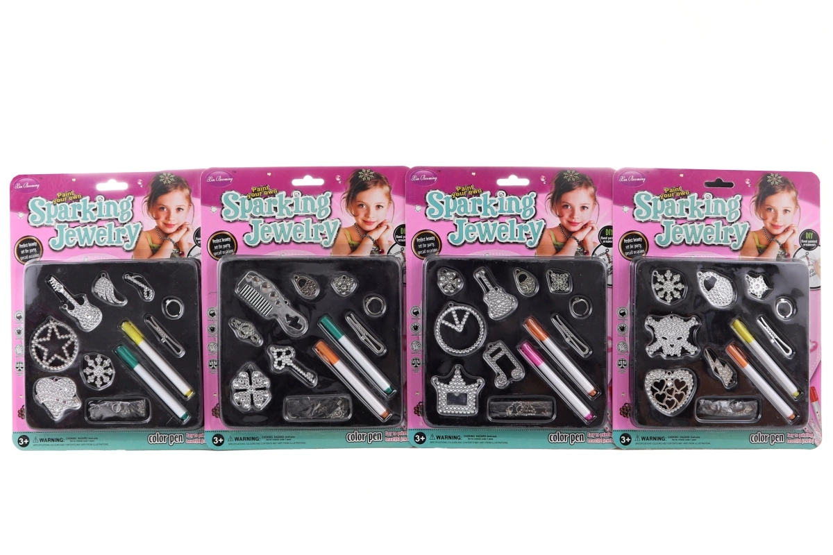 Dette sjove sæt stimulerer børns fantasi og finmotorik. Børn kan dekorere smykkerne med deres egne farver efter deres fantasi og derefter bære dem eller give dem som gave. Nem anvendelse og sikre materialer gør sættet til et godt valg til kreativ leg derhjemme eller som gave.