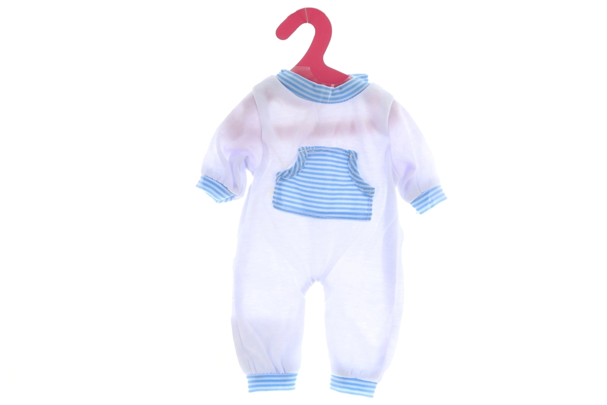 Sød sparkedragt til dukker giver rollelegen som mor en ny dimension. Den er ideel til dukker i lignende størrelse, let at tage af og på, og der medfølger en kartonbøjle. Kvalitetstilbehør til leg, mål 27 × 14 cm, ærmelængde fra hals 12 cm, pakket i pose, alder 3+.