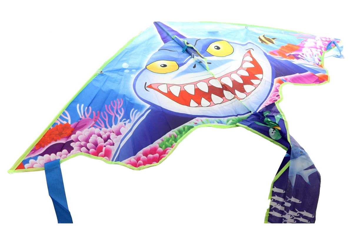 Denne sjove flyvedrage med motiv af en havhaj giver en fantastisk måde at få børn ud og bevæge sig. Takket være størrelsen og formen giver den god stabilitet i luften og er let at styre selv for begyndere.