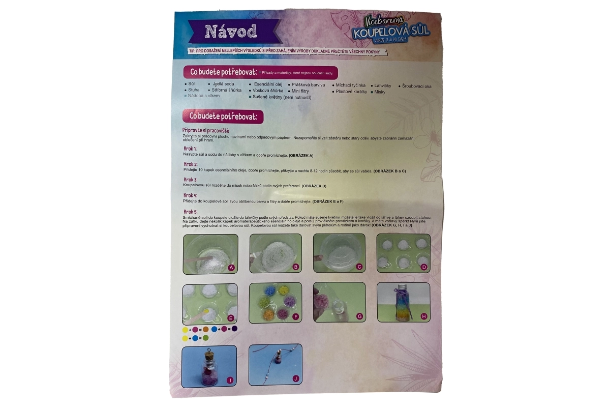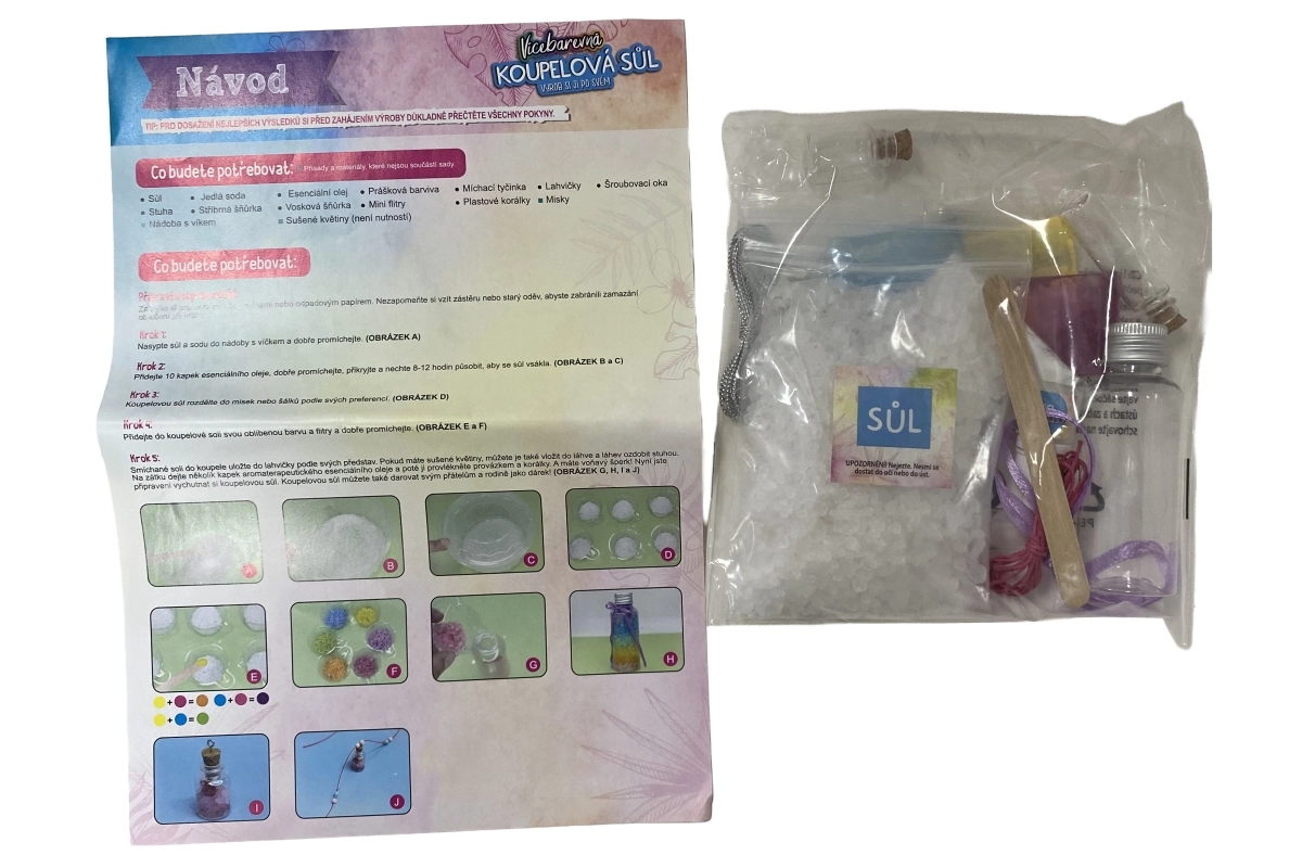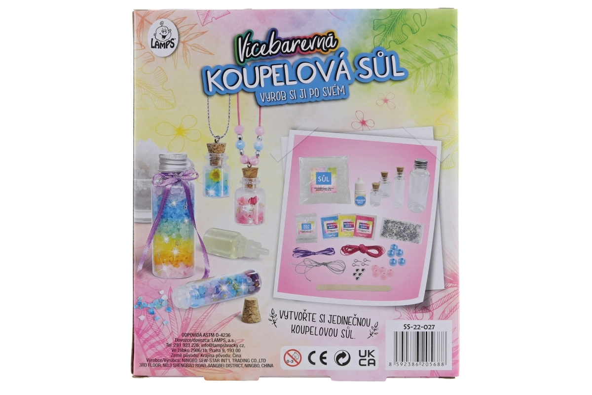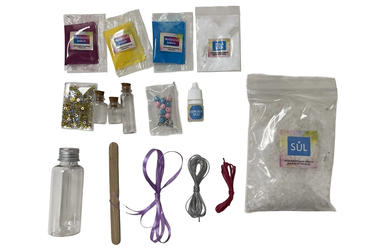 Med dette sjove sæt laver du nemt en unik badesalt efter din egen fantasi. Kombinér farver, dufte og dekorationer, og lav originale gaver eller afslappende blandinger til badet. En simpel vejledning og alle hjælpemidler i pakken sikrer, at alle kan være med.