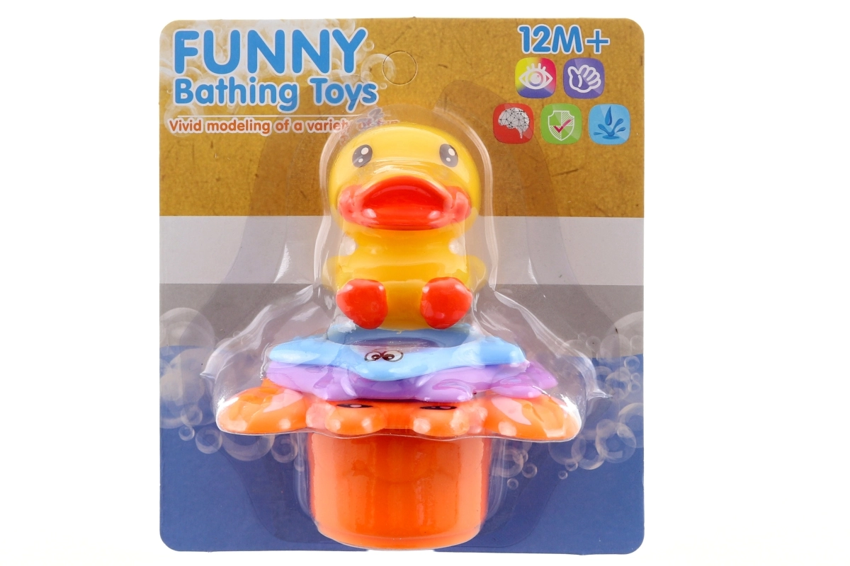 Sjovt sæt til bad og vandleg: farverige kopper med en sød lille and vil begejstre enhver tumling. Understøtter finmotorisk udvikling, lære om former og volumen og giver glæde ved badetid. Let plastmateriale er sikkert og holdbart til børn fra 12 måneder.