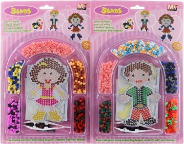 Dette sæt med strygeperler i de populære motiver dreng/pige er ideelt til børn, der elsker at skabe. Takket være den enkle fremgangsmåde kan du nemt lave farverige billeder og dekorationer. Materialet er let og holdbar plast, som egner sig til børns kreationer.