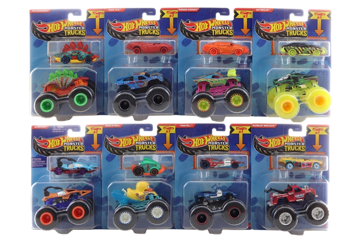 Opdag en verden af monstermæssig sjov med Hot Wheels Monster Trucks i skala 1:64. Hver truck er lavet af massivt metal, har et markant design og er klar til sammenstød, hop og hårde slag. I pakken medfølger også den berømte Hot Wheels 1:64 lillebil for endnu flere lege-kombinationer.