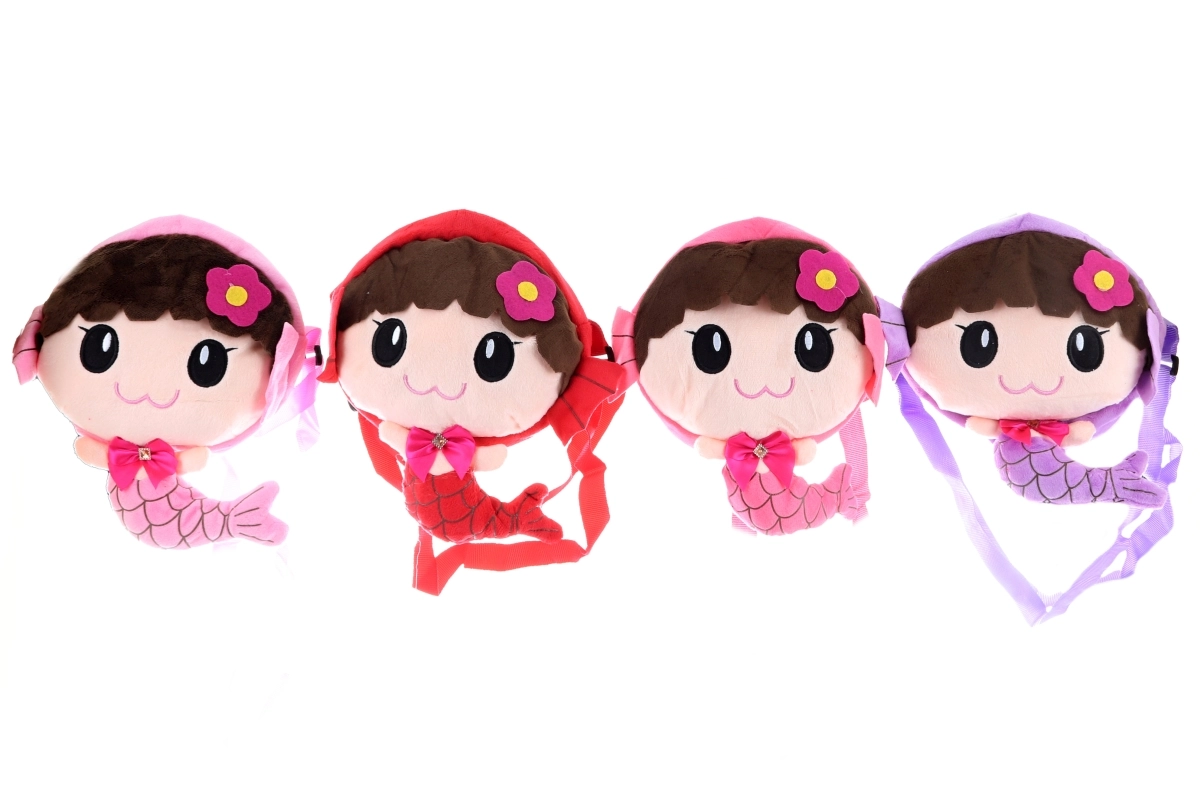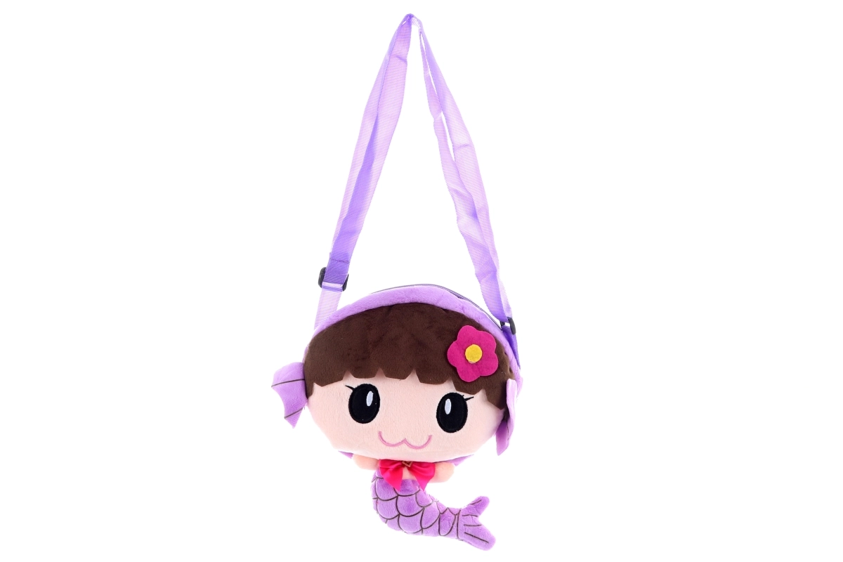 Denne charmerende plys-taske i form af en havfrue fanger børns opmærksomhed ved første øjekast. Med de kompakte mål 22 × 23 × 8 cm bæres den behageligt og rummer nemt nødvendigheder som lommetørklæder, små legetøj eller nøgler. Det bløde materiale er rart at røre ved og sikkert til daglig brug (produktet er ikke legetøj).