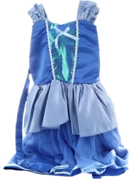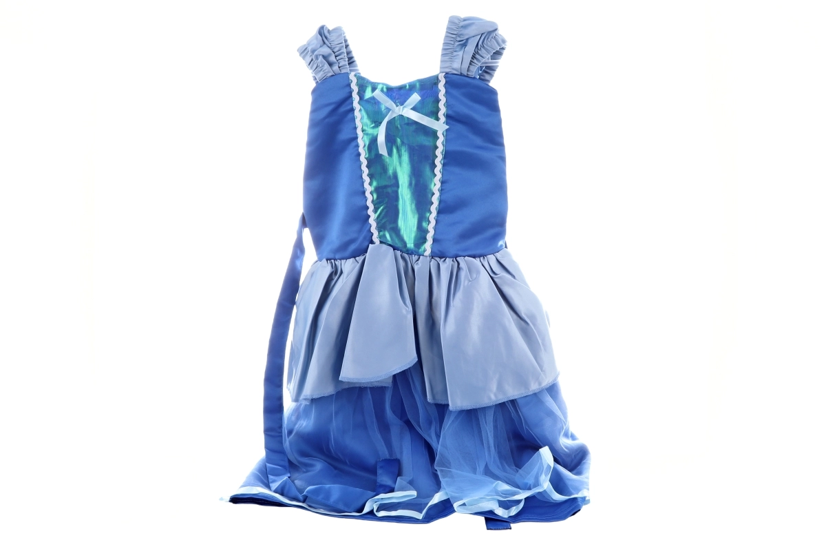 Tænd fantasien med en elegant blå kostumekjole med fine flæser og gennemsigtig tyl. Et perfekt valg til karneval, fødselsdagsfest eller udklædningsleg derhjemme – let, behagelig og visuelt iøjnefaldende.