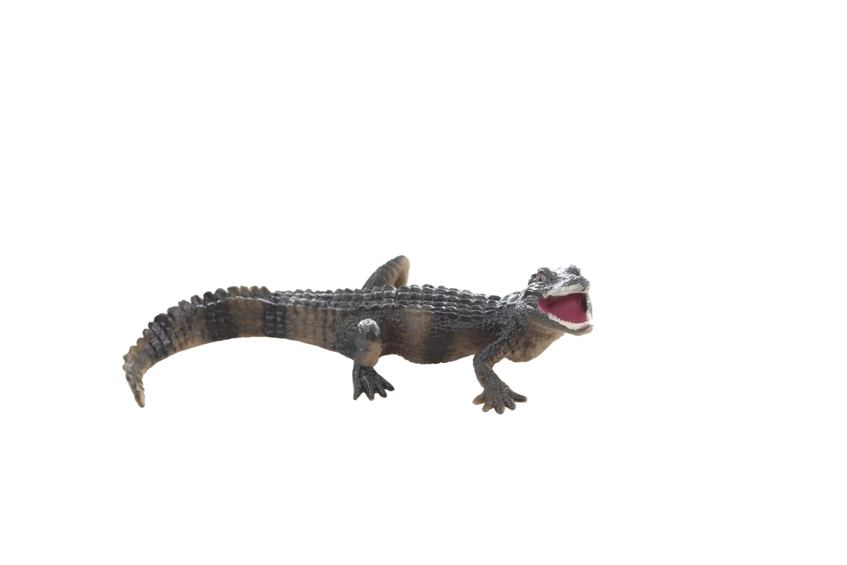 Teksturerede skæl, kropsform og markant gab efterligner troværdigt en rigtig krokodille og understøtter børns fantasi.