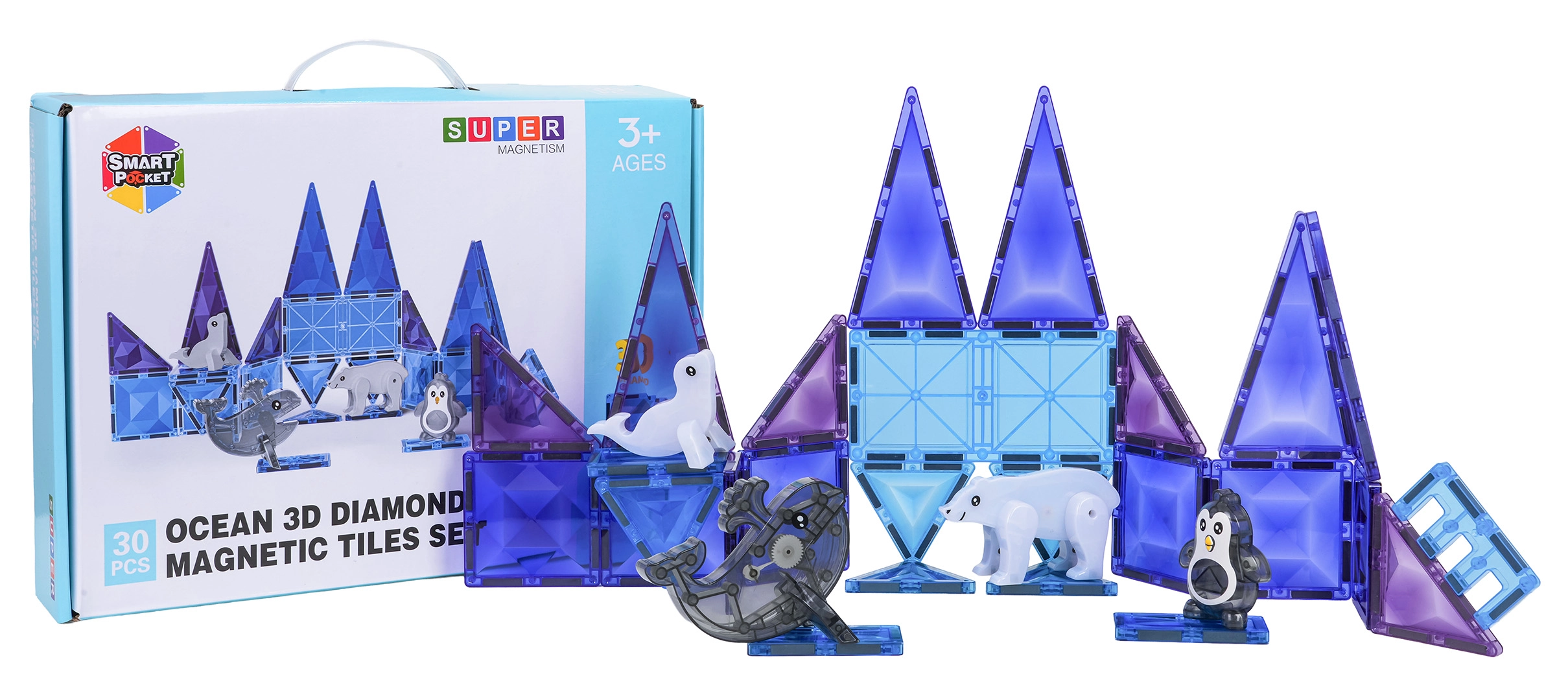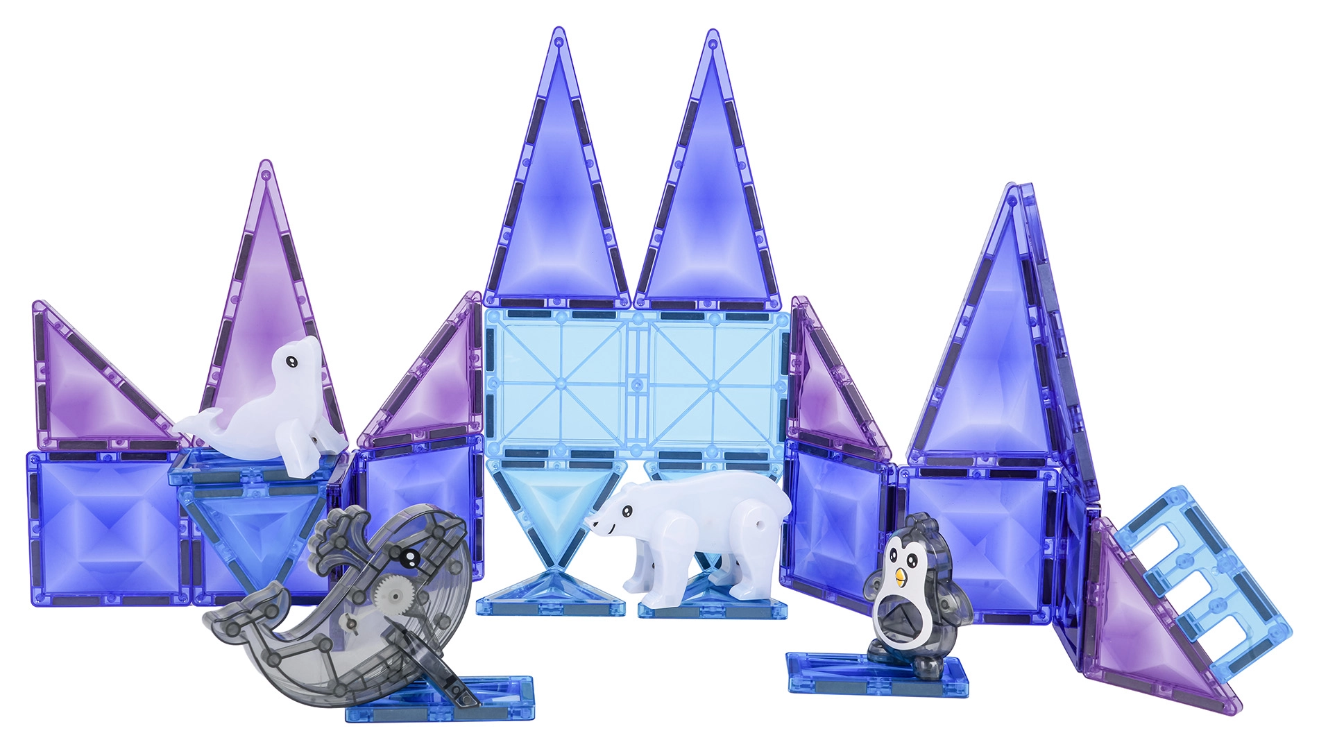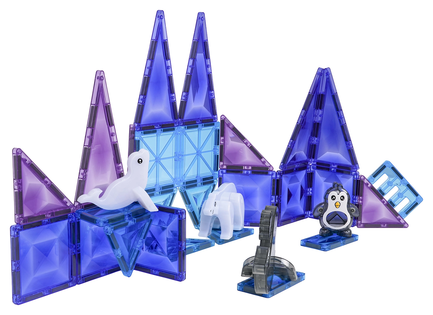 Det magnetiske byggesæt Ice Snow er designet til børn fra 3 år. Halvgennemsigtige dele i kølige farver samles til tårne, mure og ispaladser, hvor de magnetiske samlinger holder formen, og konstruktionerne er stabile. Sættet indeholder også søde figurer – en sæl, en pingvin, en delfin og en isbjørn – der bringer enhver leg til live.