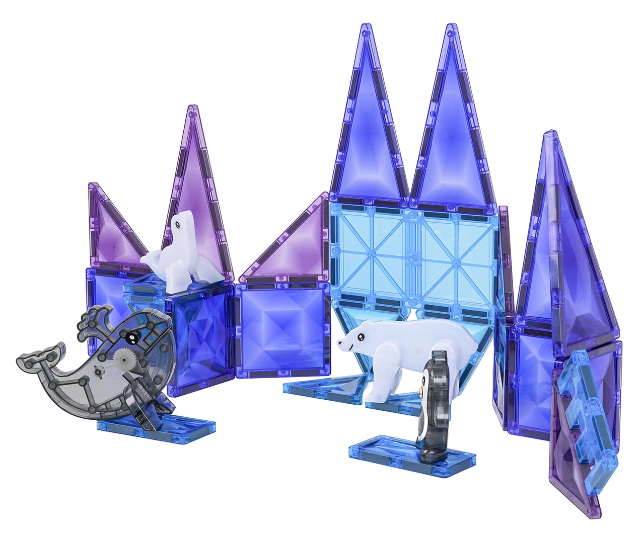 Gennemsigtige blå og lilla dele styrker den visuelle sans og den æstetiske forståelse under opbygning af is-inspirerede konstruktioner.