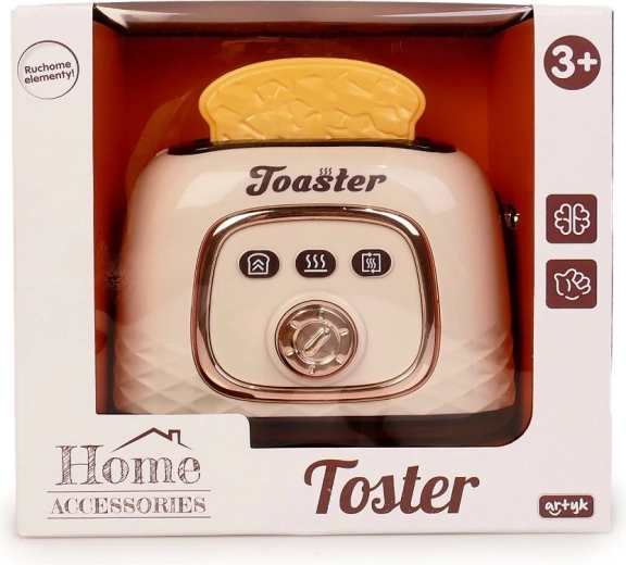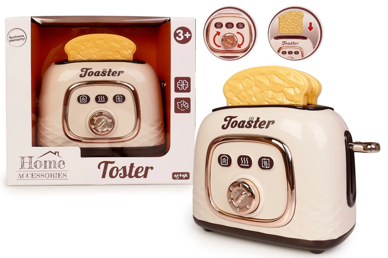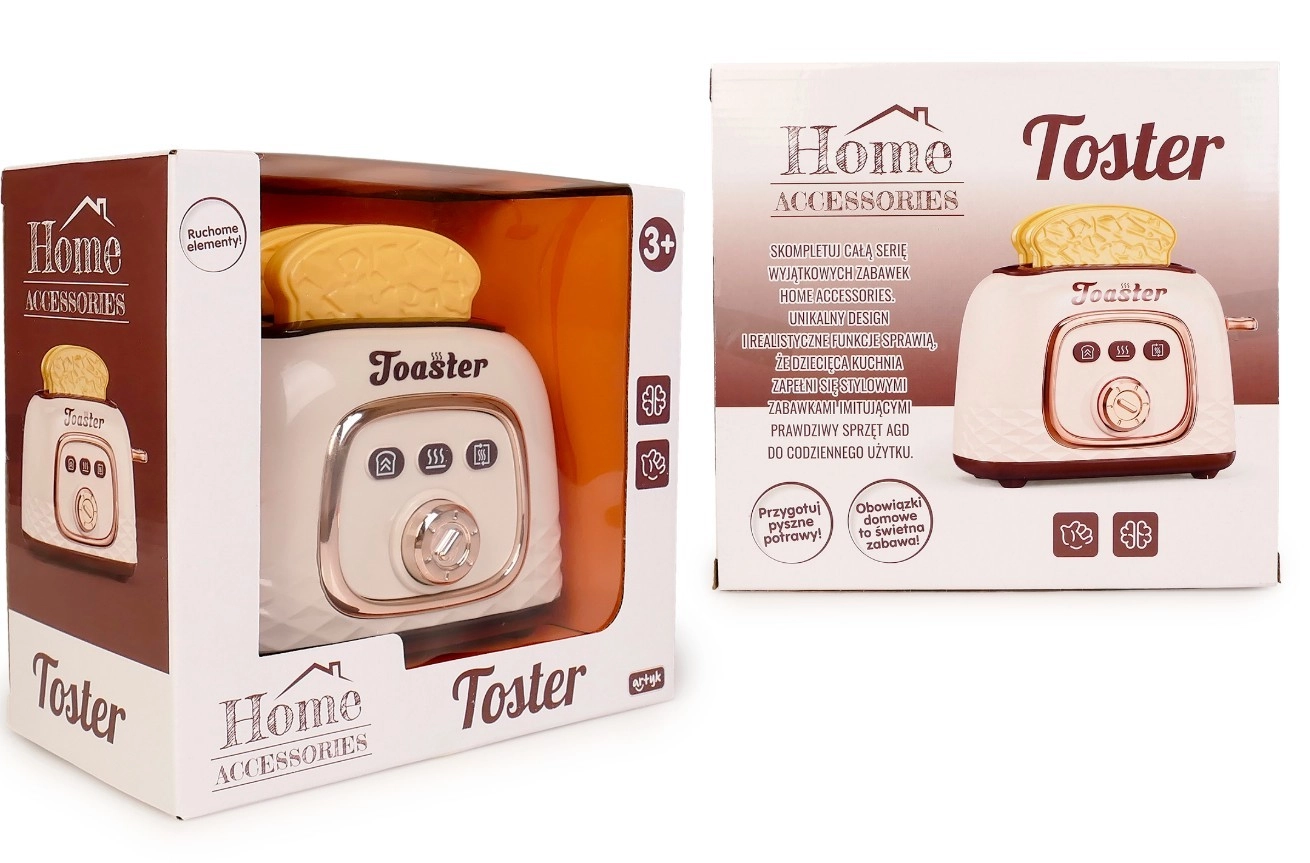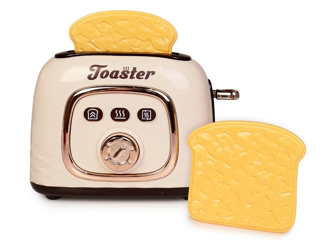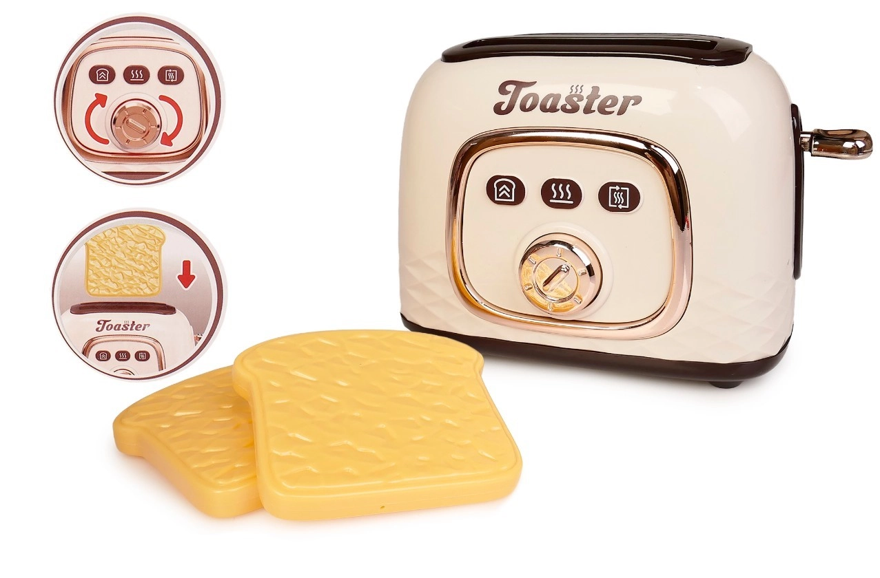 Børnebrødristeren med toast er et ideelt tilbehør til ethvert legekøkken. Med enkel betjening kan børn nyde realistisk morgenmadstilberedning – de trykker på sideknappen, toastene sænkes og popper selv op efter et øjeblik.