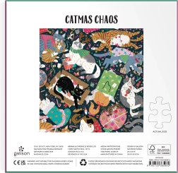 Nyd sjov samling med elegante metalliske effekter: det firkantede puslespil med motiv af katte-julekaos byder på 500 brikker, høj kvalitet og en motivskabelon i pakken. Det færdige billede måler 50,8 × 50,8 cm og egner sig perfekt som dekoration eller gave til katte- og juleelskere.