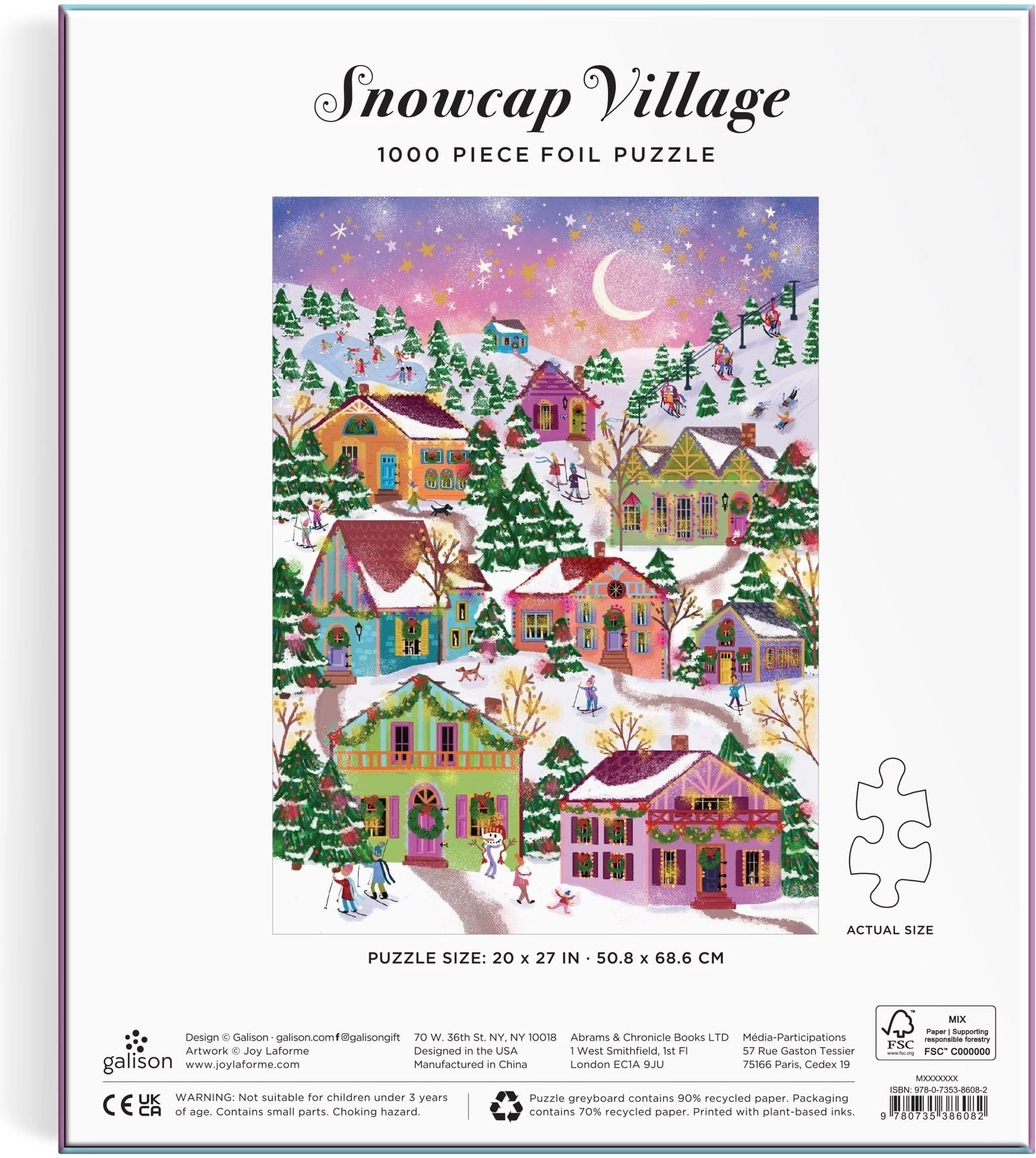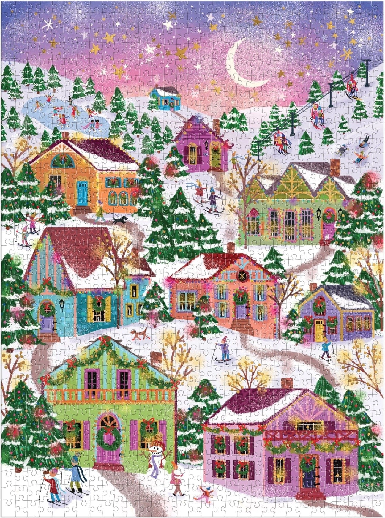 Dette stilfulde puslespil med motiv af en snedækket landsby er ideelt til vinteraftener og som gave til puslespilsentusiaster. Den metalliske effekt skaber indtryk af guld, sølv og andre skinnende metaller, så det færdige billede virkelig skiller sig ud.