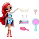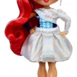 Leddelt dukke med langt hår, markante briller og sølvfarvede garderobeelementer til kreativ leg og fotografering.