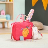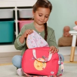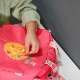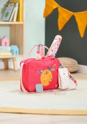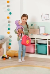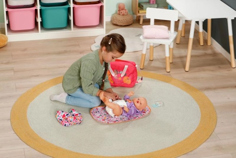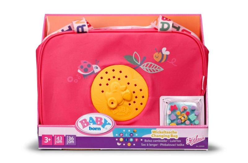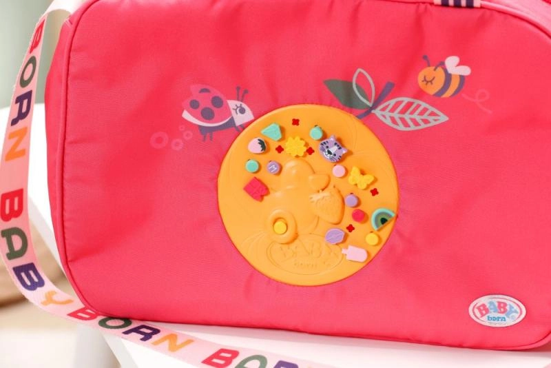BABY born pusletaske er let, robust og designet til at holde alle nødvendigheder til dukkepleje overskueligt lige ved hånden. Tasken har lynlås, praktiske lommer og en komfortabel skulderrem. Farverige motiver og legesyge detaljer gør hver gåtur til et stilfuldt eventyr.