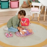 Det bløde og aftørringsvenlige underlag sikrer ren og behagelig pusling af dukken hvor som helst. Det foldes nemt sammen i tasken og fylder minimalt.