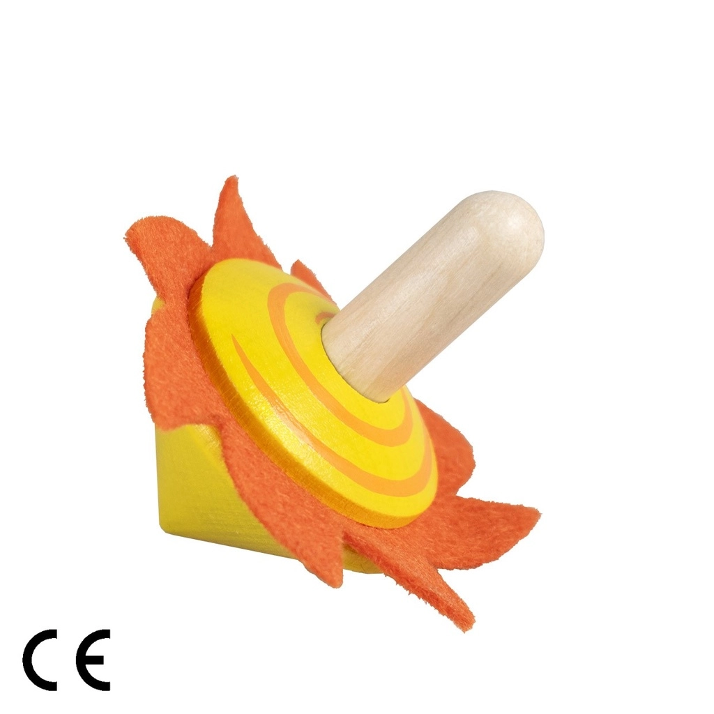Giv børnene glæden ved et enkelt, men fascinerende stykke legetøj. Trætoppen med sol er en smuk klassiker, der lærer børn præcision ved opspin, tålmodighed og arbejde med balance. Det glade solmotiv i filt fanger opmærksomheden ved første øjekast og motiverer til at prøve nye tricks.