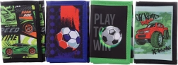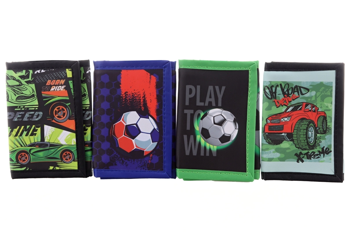 Praktisk drengepung med et attraktivt motiv af fodbold eller biler, som vil glæde enhver lille sportsmand og elsker af hurtige køretøjer. Udvendigt er den gummibelagt for bedre holdbarhed, indvendigt byder den på én stor lomme med lynlås og flere mindre rum uden lukning. Ideel til lommepenge, småmønter og kort.