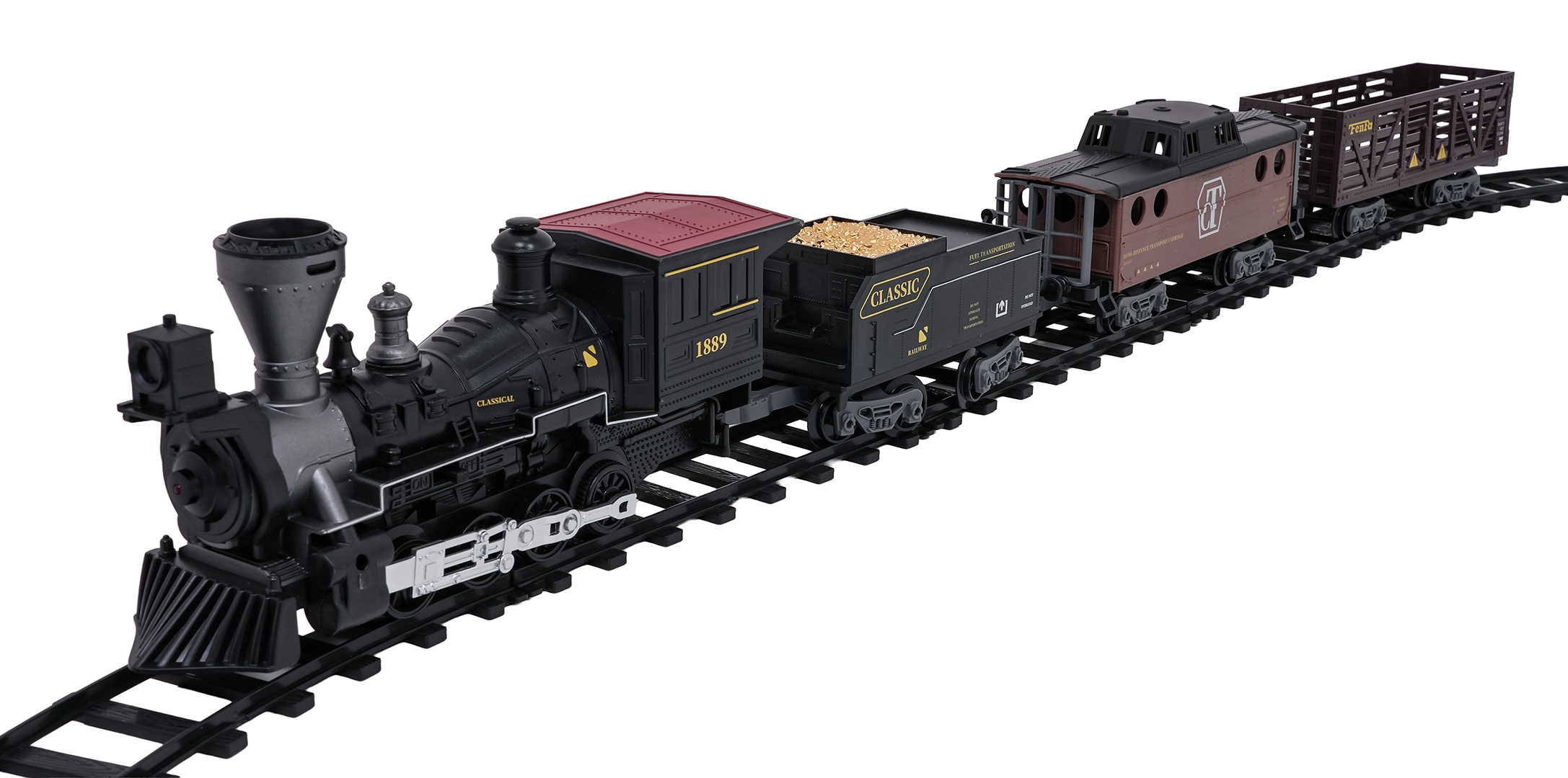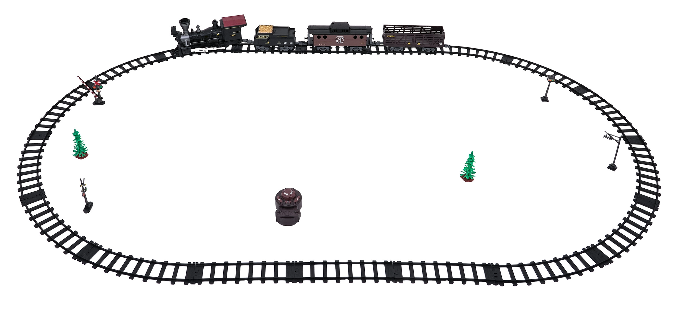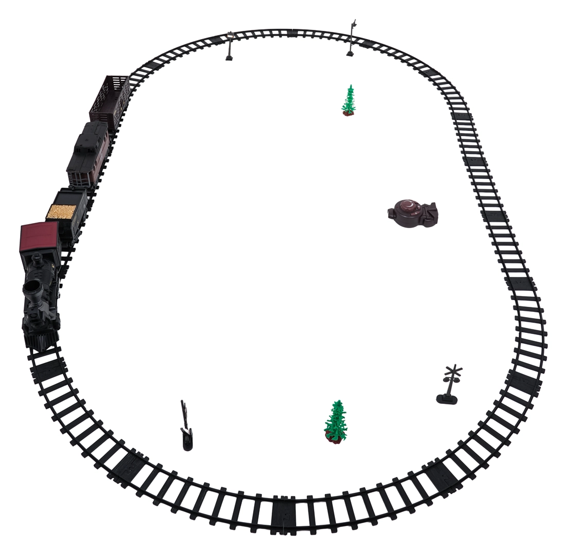 Oplev charmen ved klassiske jernbaner med dette retro fjernstyrede tog. Sættet byder på røg fra skorstenen, forlygte og realistiske kørelyde. Med 2,4 GHz styring kan det køre frem og tilbage, standse og aktivere damp. De robuste, sikre skinner samles let og danner en oval på op til 172 cm.