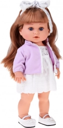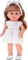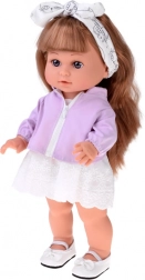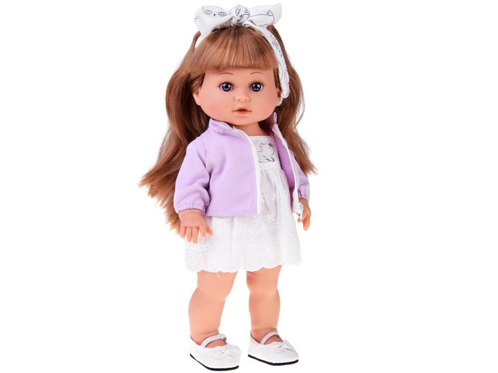 Denne stilfulde dukke er en fantastisk ven til hverdagens leg. Takket være det lange, fyldige hår og den medfølgende børste kan børn nyde at børste, flette og style. Det elegante outfit med blondedetaljer, hvide sko og hårbøjle med sløjfe understreger dukkens moderne look.