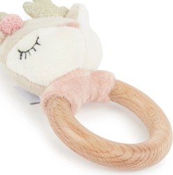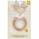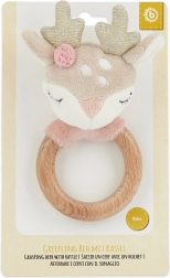 Denne multifunktionelle motoriklegetøj forener tre populære funktioner – rangle, gribelegetøj og bidering. Træringen er glat, behagelig at holde om og egnet at bide i, mens det bløde plyshoved af rådyrkalven giver en beroligende taktil oplevelse. Den blide raslen stimulerer naturligt nysgerrigheden og udvikler øje–hånd-koordinationen.