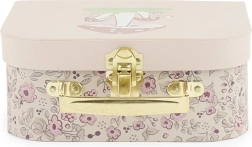 Et sødt sæt med tre kartonkufferter med motiv af rådyrkalven Ella og blomsterdesign glæder både små rejsende og ordenselskere på børneværelset. Kufferterne er lavet af robust FSC-certificeret karton, har metalspænde og behageligt håndtag. Takket være muligheden for at lægge dem ind i hinanden er de pladsbesparende, holdbare og multifunktionelle – ideelle til legetøj, skatte og småting på farten.