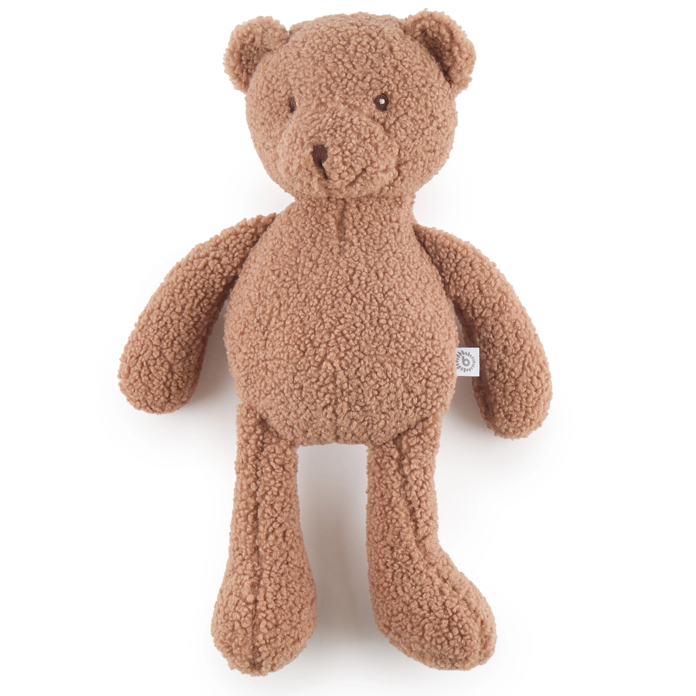 Den meget bløde overflade i en varm chokoladebrun tone indbyder til kram og føles behagelig selv mod sart børnehud.