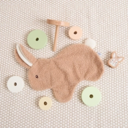 Den blide og krammevenlige krammeklud formet som en kanin bliver hurtigt din babys favoritmakker. Den bløde overflade er behagelig at røre ved, og teksturer samt knitredele støtter sanseudvikling og barnets naturlige nysgerrighed. Takket være den lette konstruktion kan selv de mindste hænder nemt gribe kluden.