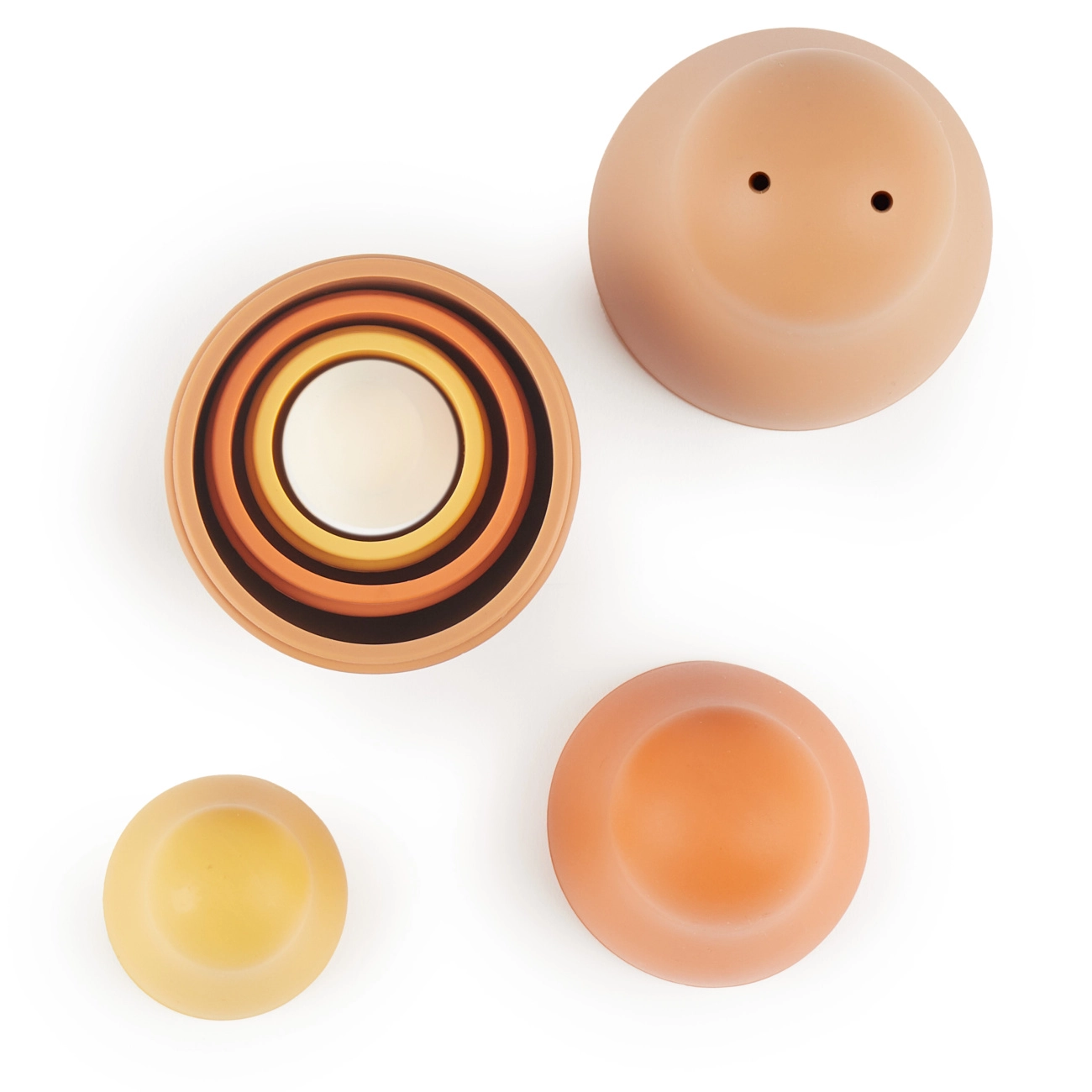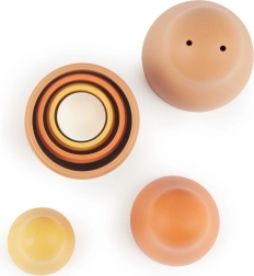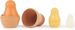 Dette sæt med 4 matrosjkaer bestående af 7 dele begejstrer børn med sit enkle og smarte design. Delene kan nemt sættes i hinanden, hvilket naturligt støtter træning af hånd-øje-koordination og forståelse for størrelser. Silikoneudførelsen er behageligt blød og samtidig robust – ideel til leg hver dag.