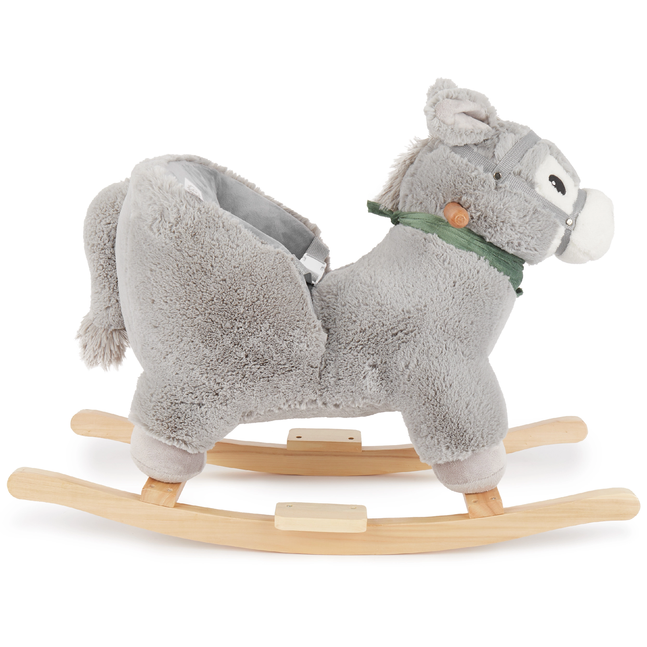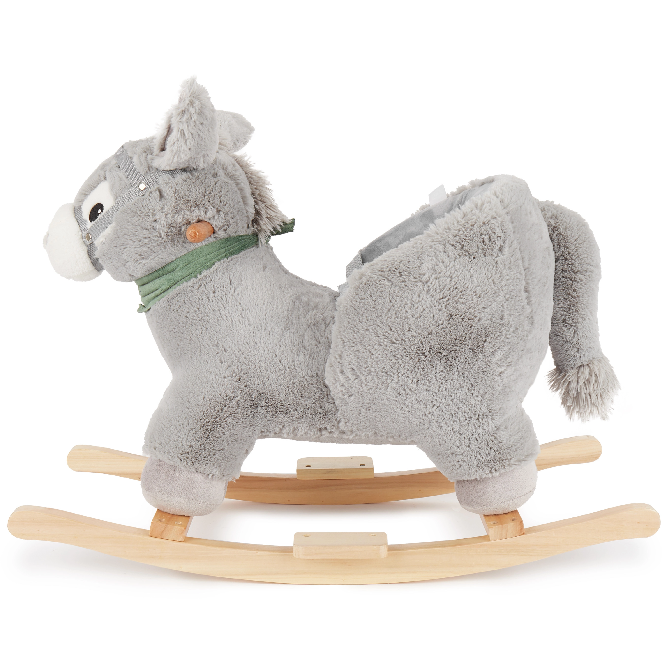 Det komfortable polstrede sæde med sikkerhedssele beskytter selv de mindste ryttere, mens den lave siddehøjde (ca. 14 cm) gør det nemt at stige på og af. Børn kan holde sikkert i træhåndtagene og hvile fødderne på fodstøtterne. Gyngningen bidrager til udviklingen af grovmotorik, balance og koordination.