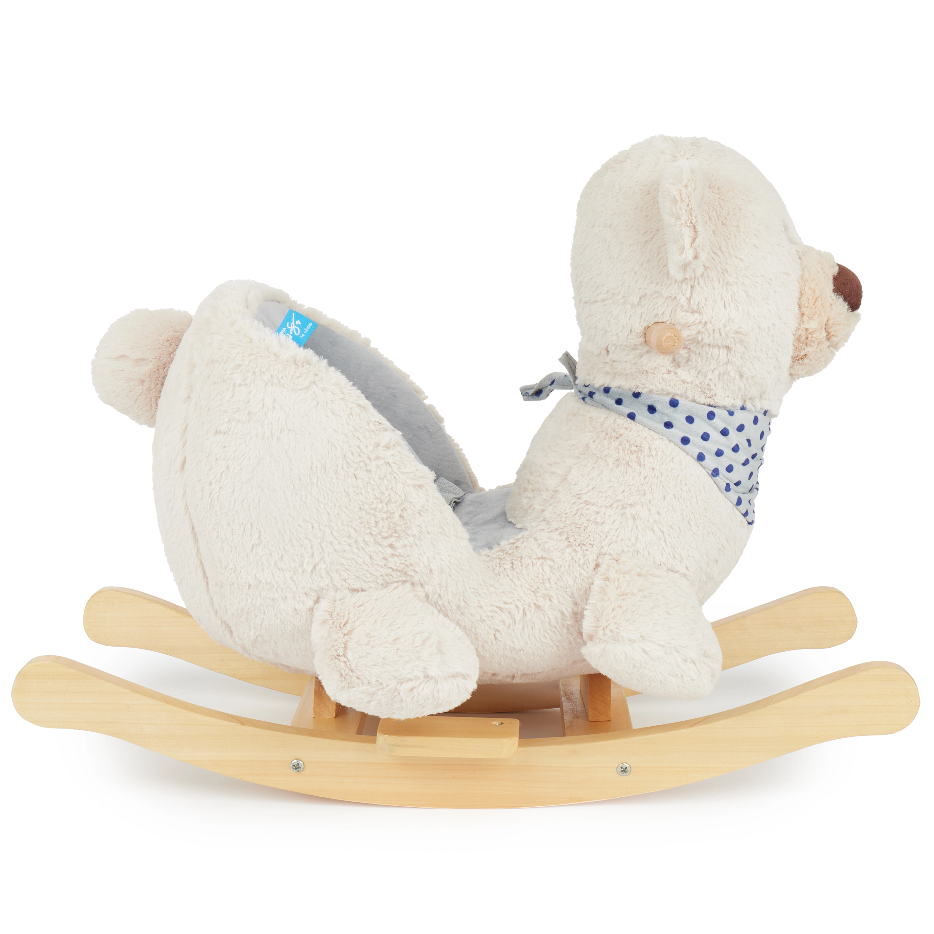 Massive træmeder med afrundede kanter og væltesikring sikrer en jævn og sikker gyngebevægelse.