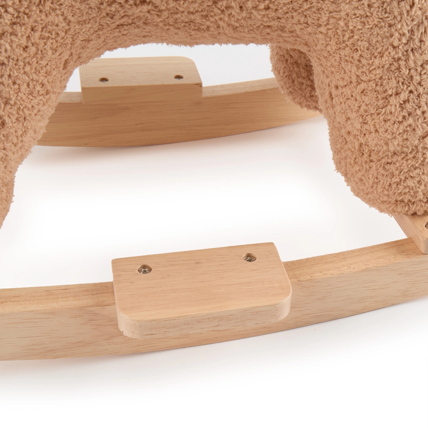 Gyngeharen BIECO Fine vinder børns hjerter med sit bløde bouclébetræk, venlige design og behagelige sæde. Takket være den robuste træramme og gennemtænkte sikkerhedsfunktioner er gyngningen glidende, stabil og tryg for de små ryttere.