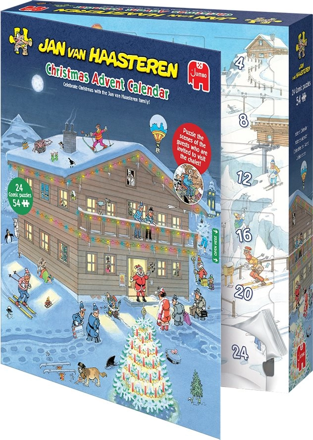 Gør ventetiden til jul endnu sjovere med JUMBO julekalenderen. Hvert vindue gemmer et selvstændigt mini-puslespil i den karakteristiske stil fra JAN VAN HAASTEREN – farverige, detaljerede og frem for alt humoristiske illustrationer, der underholder hele familien.