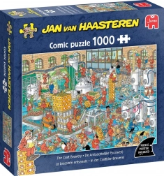 Træd ind i JAN VAN HAASTERENs humoristiske univers og opdag historierne gemt i hver eneste brik. Dette puslespil med motiv af et travlt håndværksbryggeri bringer klare farver, legende situationer og masser af figurer, der vil underholde dig i lang tid. Ideelt for dem, der elsker fine detaljer og puslespil af høj kvalitet.