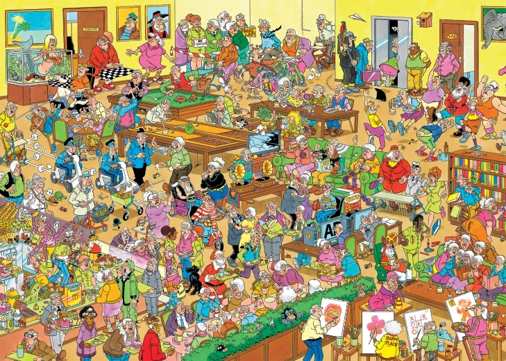 Oplev den ene joke efter den anden i den originale illustration “Plejehjemmet” af Jan van Haasteren, skabt eksklusivt til JUMBO. Den karakteristiske stil fuld af humor, masser af figurer og uventede situationer vil fange dig fra start.