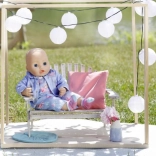 Forkæl din dukke med et komplet hverdagsoutfit. Dette deluxe denimsæt kombinerer komfort og trendy look: blomsterprint på seleshortsene giver ekstra flair, den hvide T-shirt med gyldne motiver lyser outfittet op, og den lyseblå denimjakke varmer, når det bliver køligere. Bløde sokker/hjemmesko fuldender helheden og giver maksimal komfort under legen.
