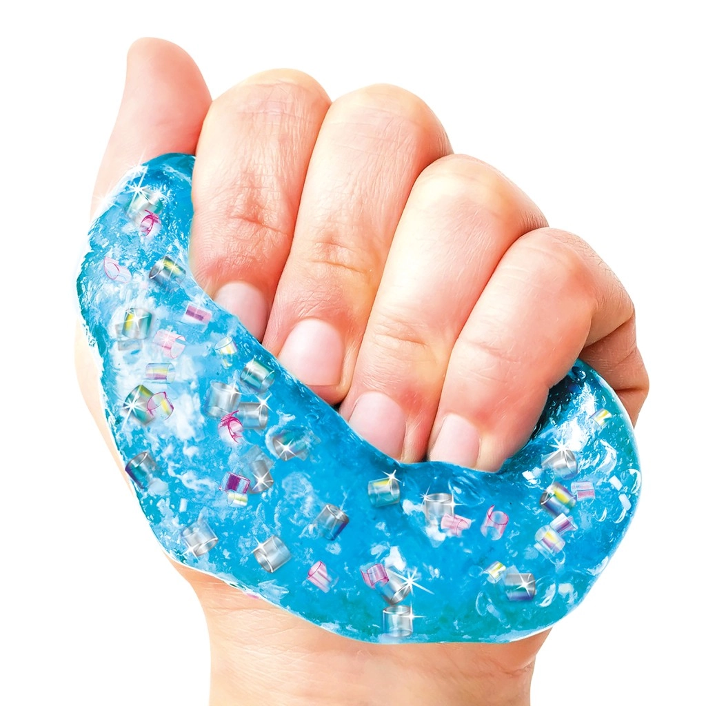 Pynt slimen med glitter, konfetti, perler eller skumterninger og skab unikke kombinationer af farver og teksturer.