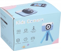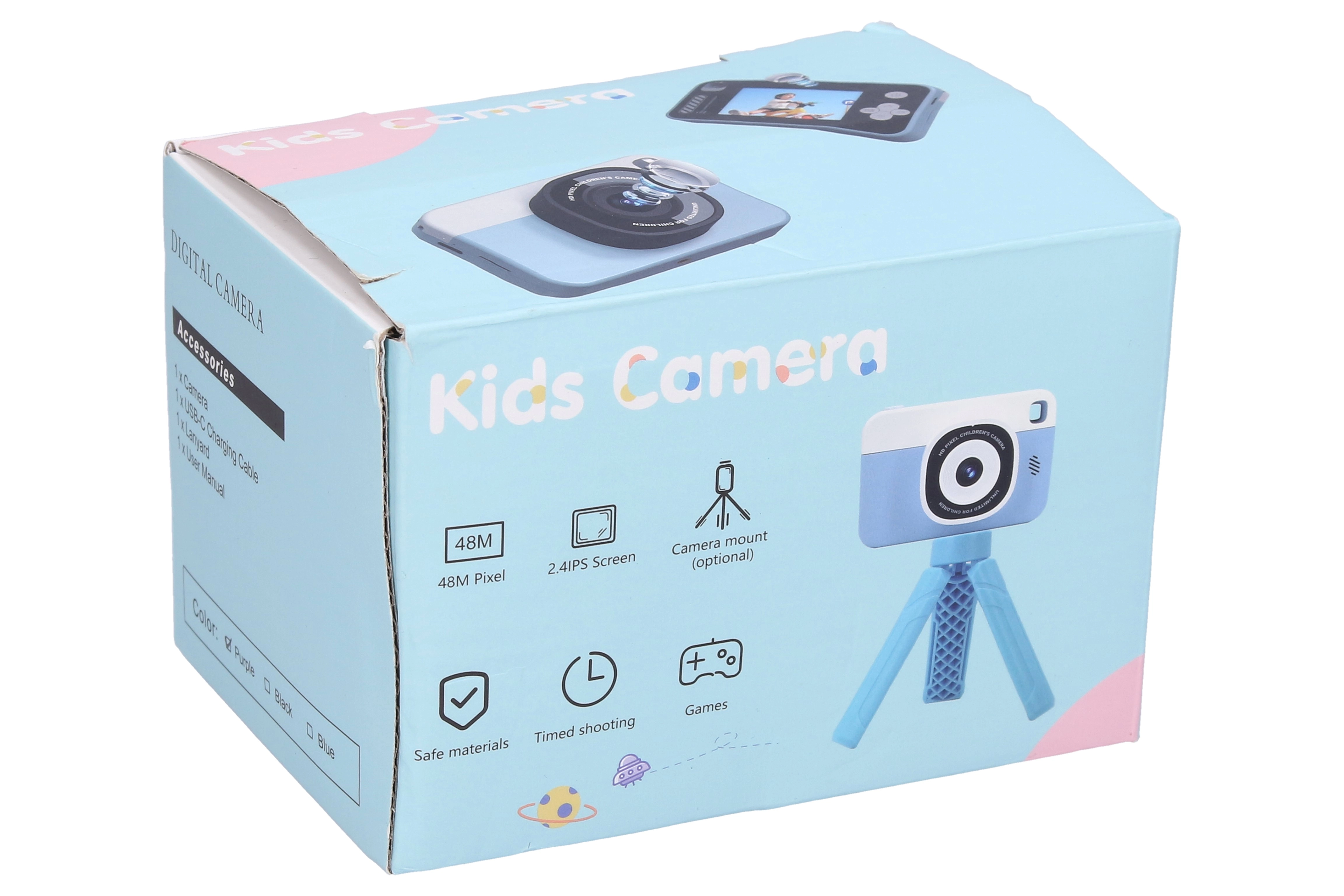 Børn får kreativ underholdning med filtre, rammer, animationer og forvrængninger samt en timer på 10/5/2 s til gruppefotos eller selfies. Kameraet byder også på spil og en MP3‑afspiller til pauserne. 4× digital zoom bringer motivet tættere på, selfiekameraet glæder selvielystne, og det praktiske stativ sikrer stabile optagelser.