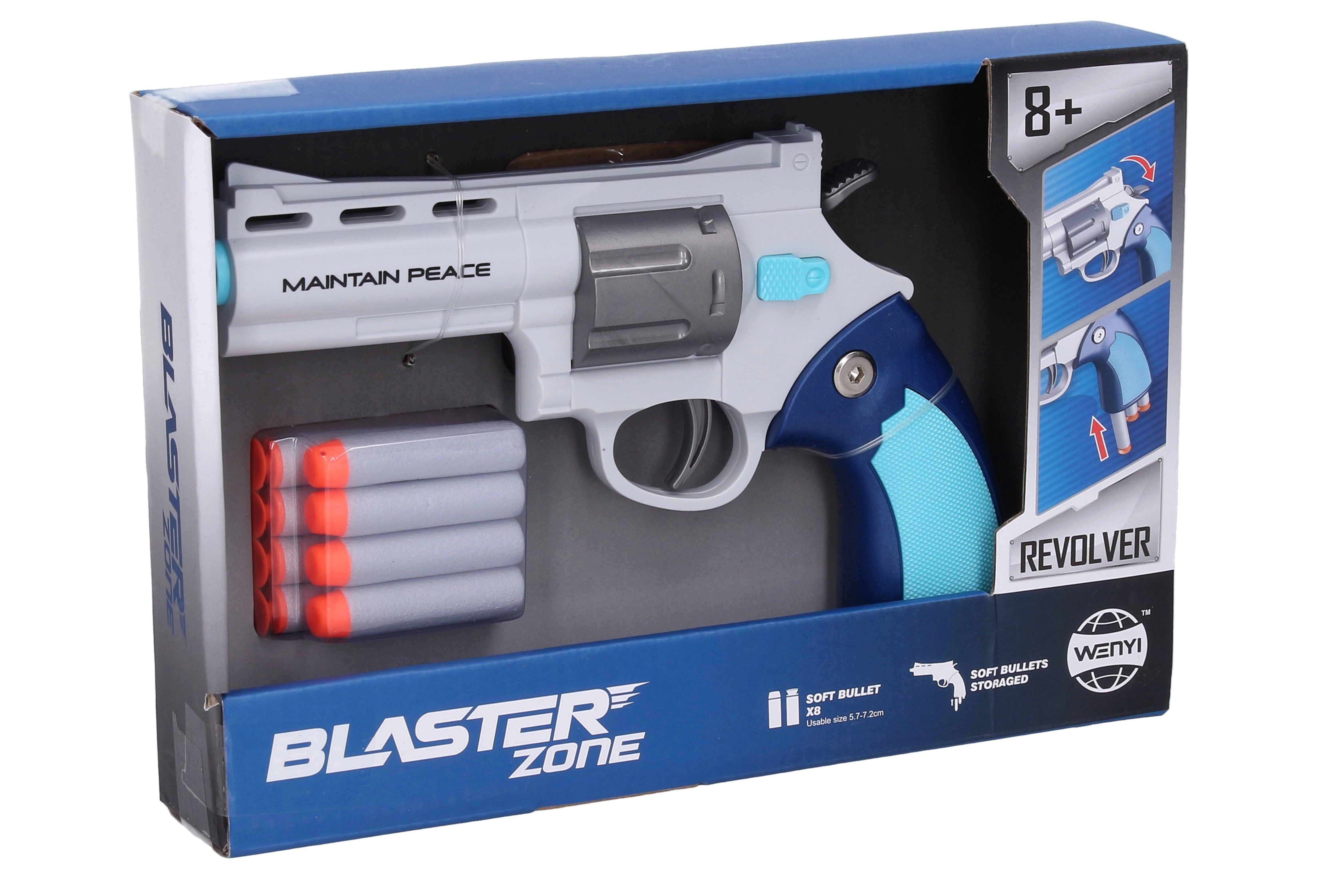 Nyd actionfyldt underholdning med et sikkert legetøj, der støtter præcision og koncentration. Skumrevolveren er ideel til både indendørs og udendørs brug, og takket være de to typer projektiler kan børn prøve forskellige spilscenarier – fra hurtig skydning til at få skuddene til at hæfte på glatte overflader.