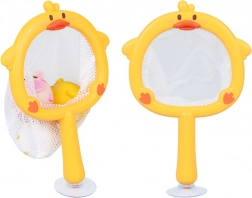 Det andeformede net med sugekop fastgøres på glatte overflader. Børn kan fange dyrene, opbevare dem og lade dem dryppe af – orden i badekarret på ingen tid.