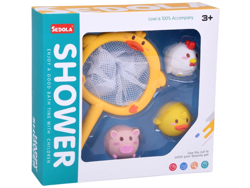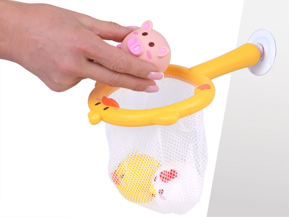 Dette søde badesæt forvandler hvert bad til en sjov leg. Med det andeformede net kan børn fange de flydende dyr og træne finmotorik, hånd-øje-koordination og tålmodighed. Sugekoppen på håndtaget gør det muligt at sætte nettet fast på en glat overflade på badekar eller fliser, så legetøjet nemt tørrer efter badet og forbliver pænt organiseret.