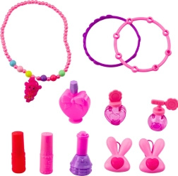 Armbånd, perlekæde, ringe, kam, hjerteformet spejl, imitation af læbestifter, neglelak og parfumer til timevis af kreativ leg.