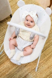 MoMi Glossy er en let og kompakt vibrerende liggestol designet til daglig komfort og beroligelse af babyen. Det sensoriske modul med otte melodier og justerbar vibrationsintensitet hjælper med hurtigere at berolige og afspænde, mens bløde tekstiler og polstrede kanter skaber et behageligt miljø.