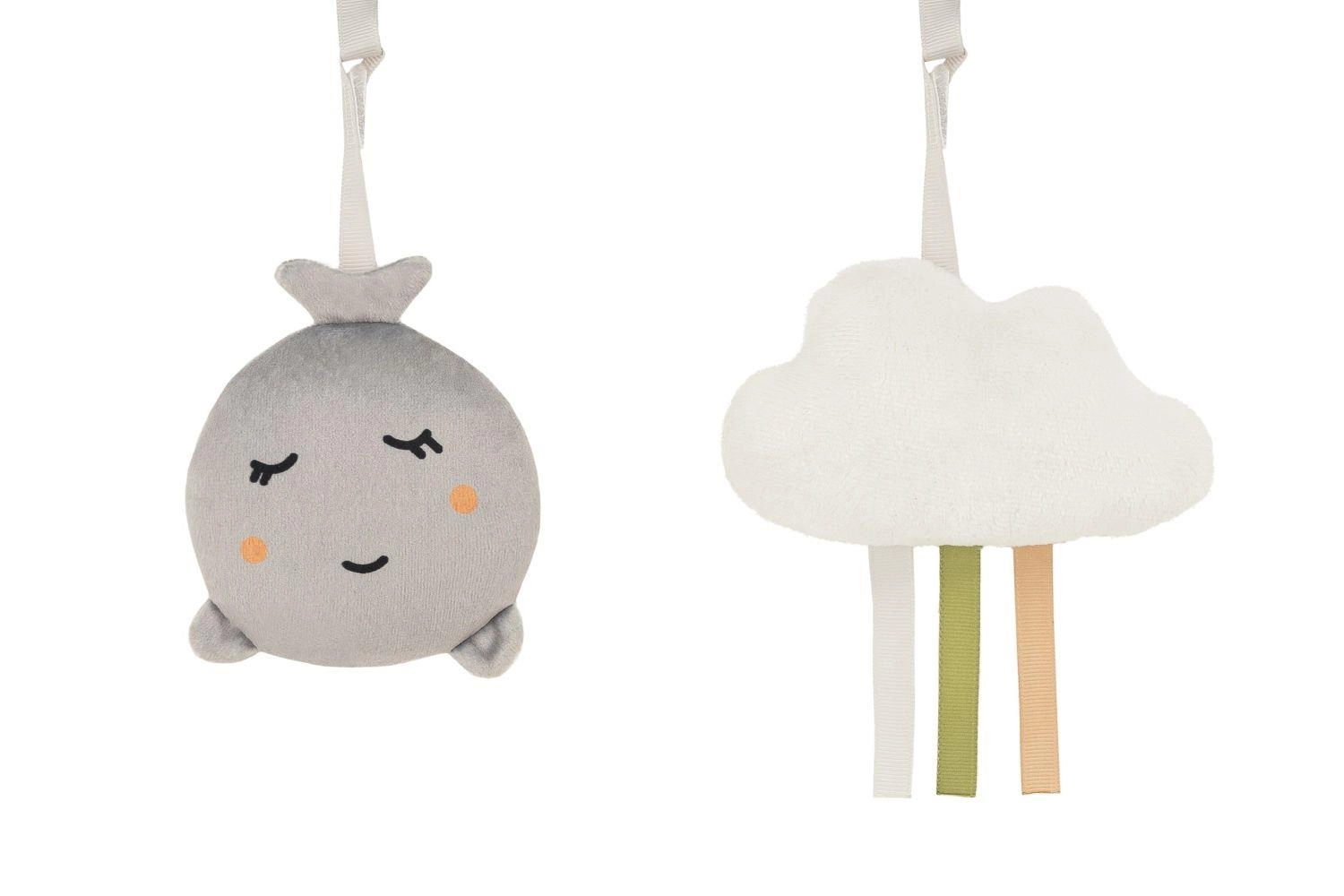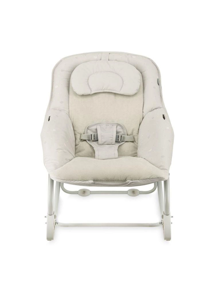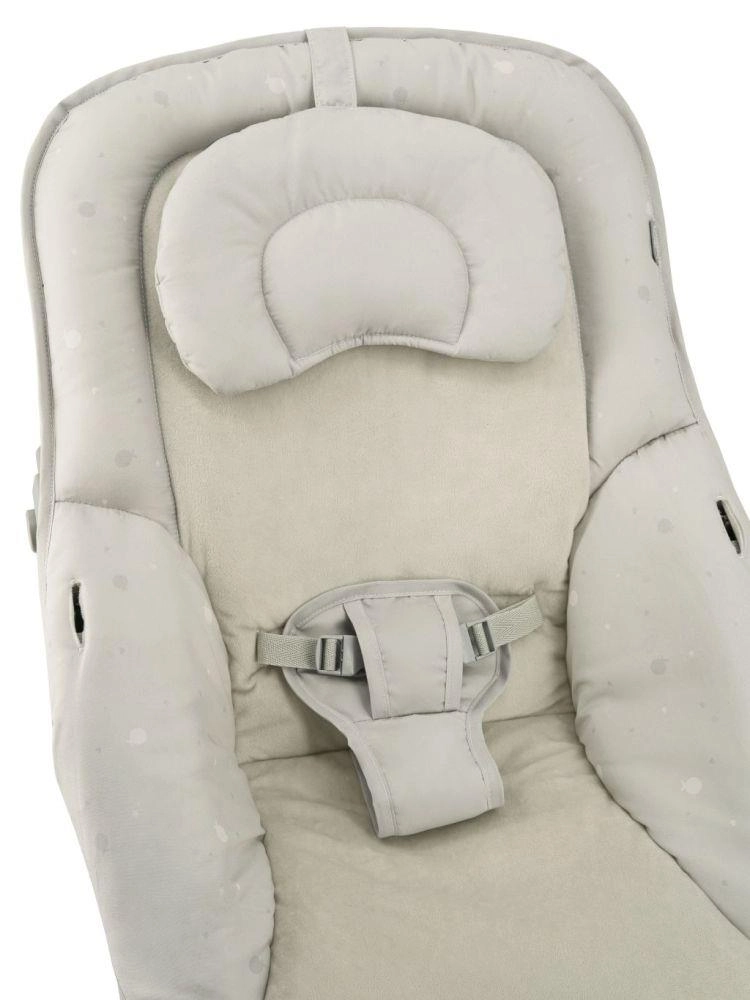 For sikkerhedens skyld er der 3-punkts sikkerhedssele og bred skridtestrop, og den stabile ramme muliggør også låsning af vuggefunktionen. Praktiske aftagelige og vaskbare betræk gør vedligeholdelsen let. Legetøjsbøjlen med to bløde legetøj fremmer sanseudviklingen og underholder babyen, når du har brug for frie hænder.