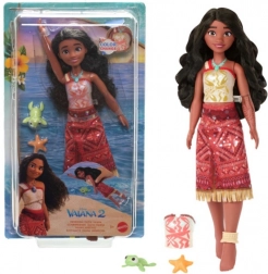 Dukken Vaiana, inspireret af Disney-filmen Vaiana 2, inviterer børn på eventyr over det åbne hav. Hendes overdel skifter farve ved kontakt med varmt vand, så I kan nyde den magiske forvandling igen og igen. Med knappen i taljen bevæger benene sig, og dukken ser ud, som om hun svømmer – ideel til leg ved vandet og derhjemme.