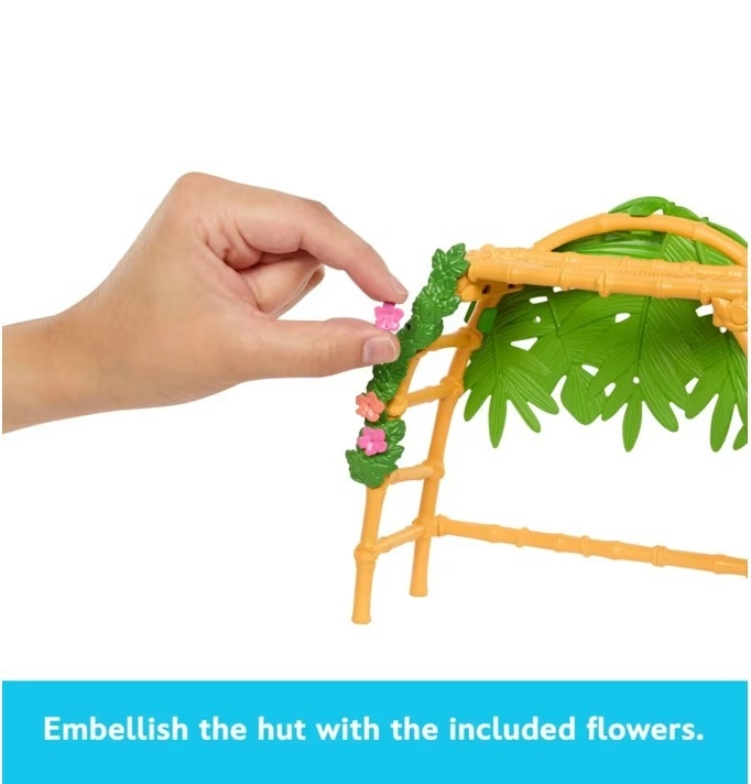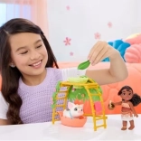 Dette tematiske sæt bringer børn den tropiske ø-stemning: en hyggelig hytte med blade, skål og balje til at bade Pua, blomster til pynt og praktisk tilbehør til pleje. Børn kan dekorere hytten, bade Pua og finde på historier med Simea, Vaianas lillesøster, inspireret af filmen Disney Moana 2.