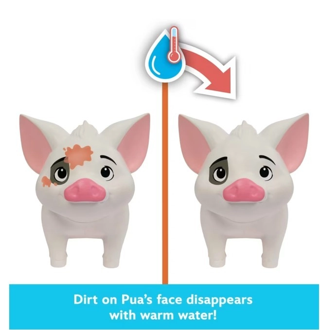 Træd ind i Motunuis verden med et legesæt inspireret af filmen Disney MOANA 2. Den søde dukke Simea, hendes trofaste ven, grisen Pua, og mere end 10 tilbehørsdele gør både leg og bad til et sjovt eventyr. Oplev den magiske forvandling – varmt vand “vasker” snavset af Puas ansigt, som senere dukker op igen for gentagen leg.