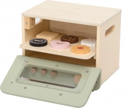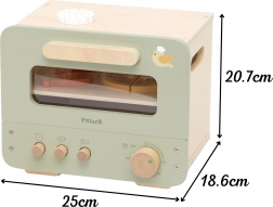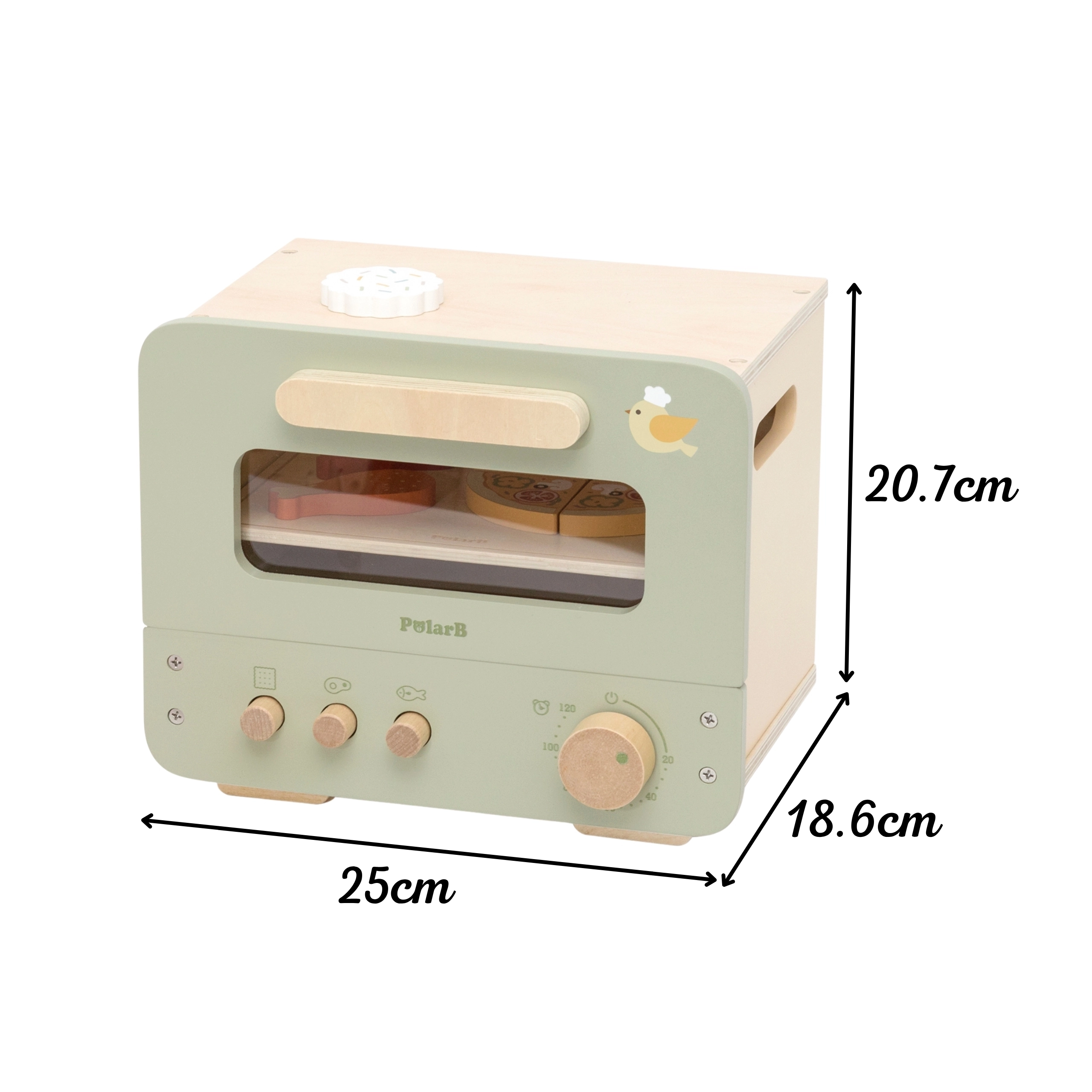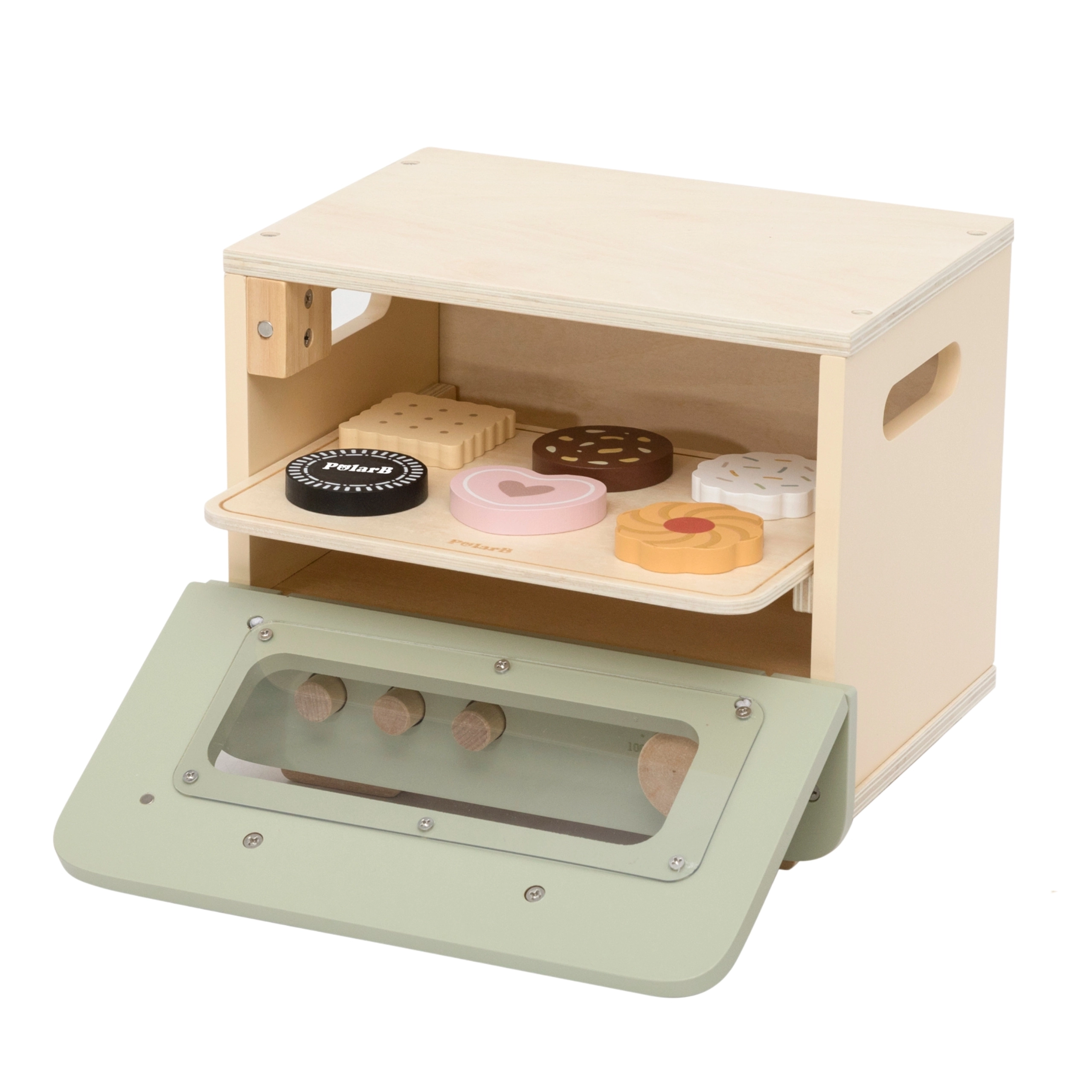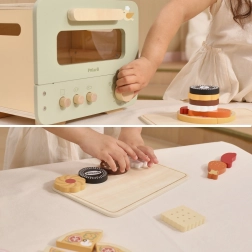 Denne stilfulde børneovn i grøn-beige giver børn en autentisk bageoplevelse. Det transparente vindue, funktionelle knapper og aftagelig bageplade inviterer til fantasifuld servering af både søde og salte lækkerier. Børn kan skære og samle minipizza, bage kager og træne fingerfærdighed og kommunikation i rolleleg.