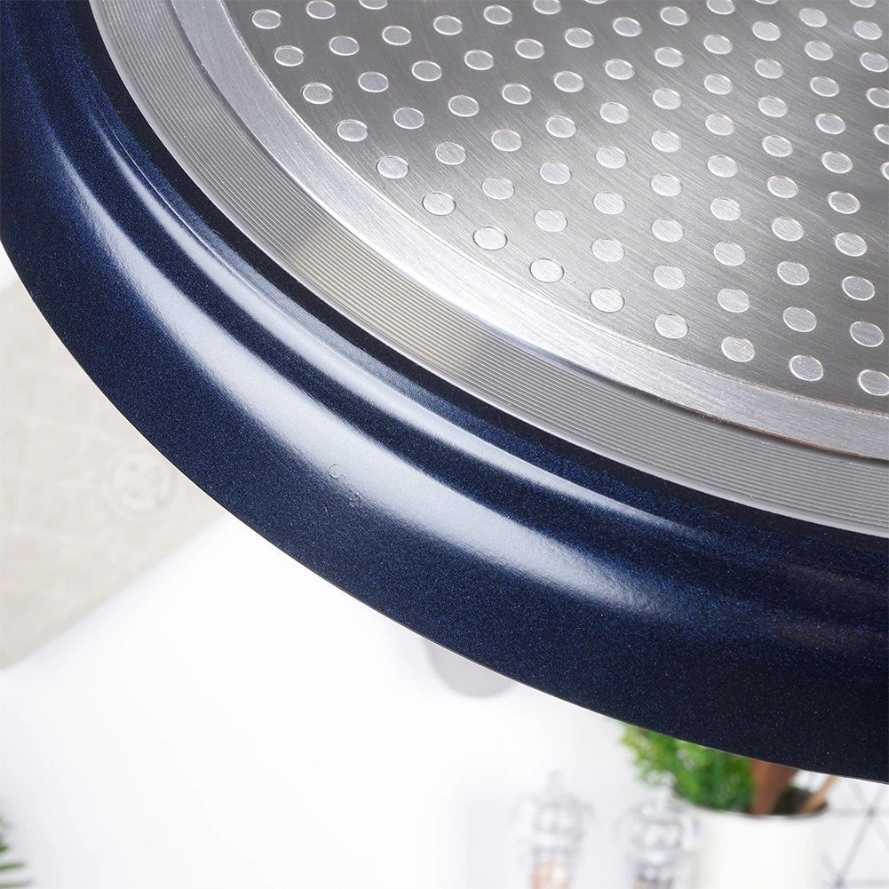 Den rustfri induktionsplade med prikket struktur sikrer hurtig opvarmning og stabil temperatur på alle komfurtyper, inklusive induktion.